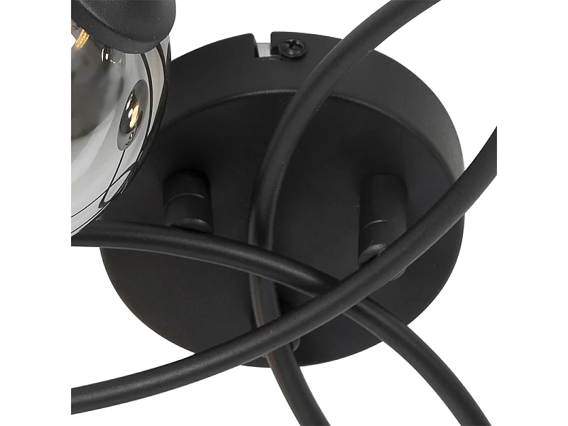 Plafonnier moderne noir 6 lumières avec verre fumé - Athènes