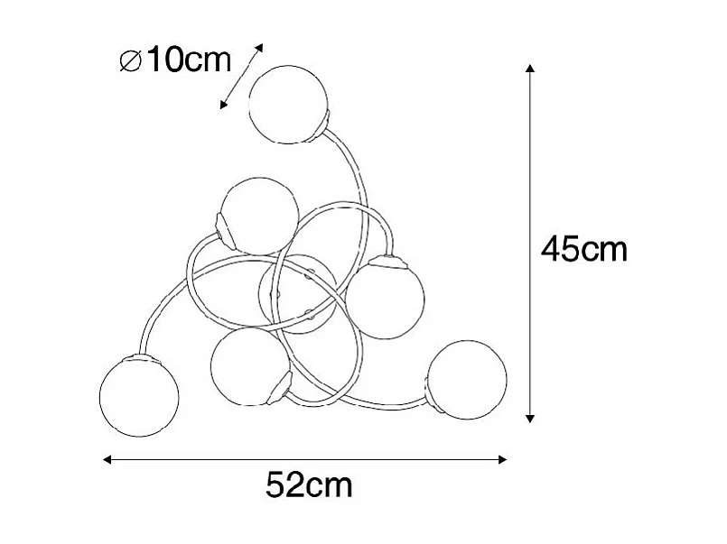 Plafonnier moderne noir avec verre opale 6 lumières - Athènes