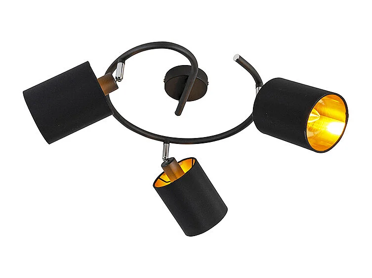 Plafonnier noir avec intérieur doré 3 lumières - Multidrum