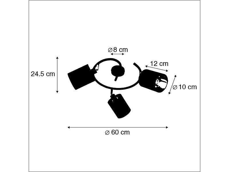 Plafonnier moderne noir 45 cm 3 lumières - Drum Trio