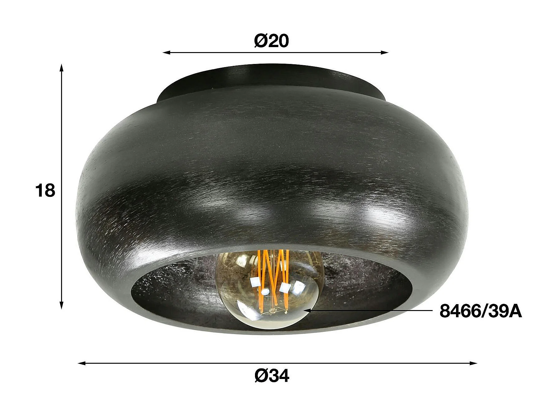 Plafonnier noir en métal RALF