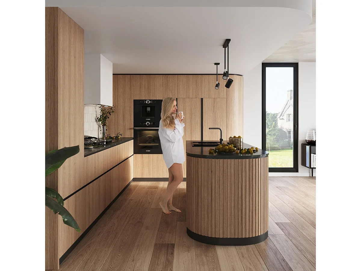 Applique Ember Minimaliste En Acier/Bois - 1 Sources Lumineuses - L.10 X H.24 Cm - Noir/Bois Naturel