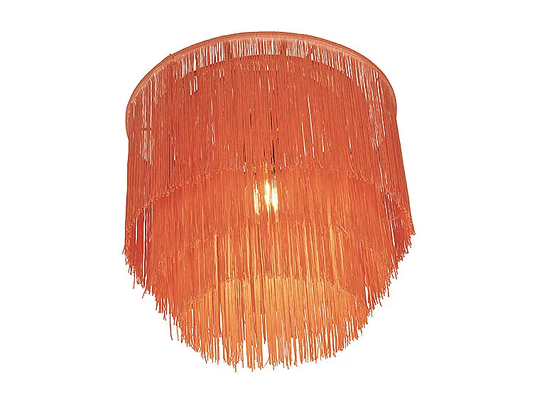 Plafonnier oriental doré avec abat-jour rose à franges - Franxa