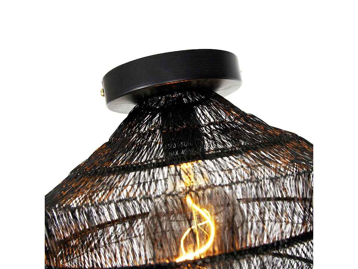 Plafonnier oriental noir avec rotin 25 cm - Emir