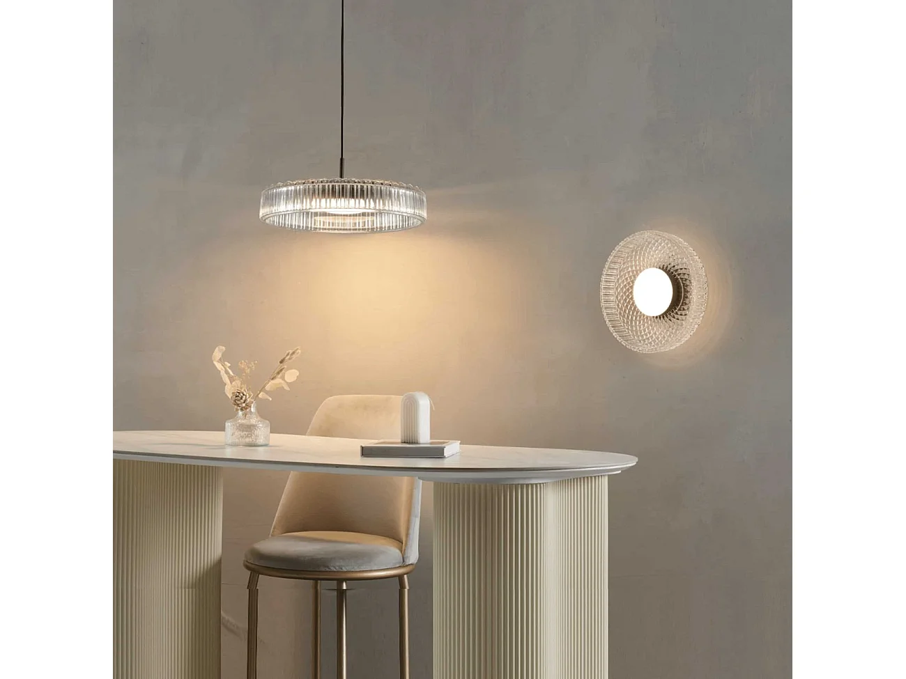 Plafonnier ou applique verre transparent et cannelé - Damian