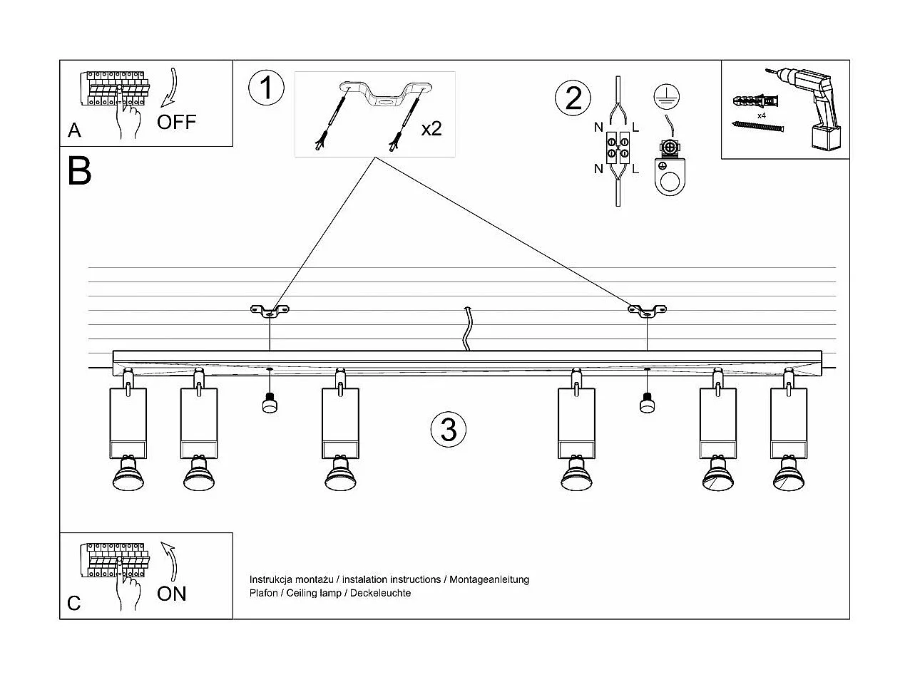 Plafonnier Radiara 6L noir