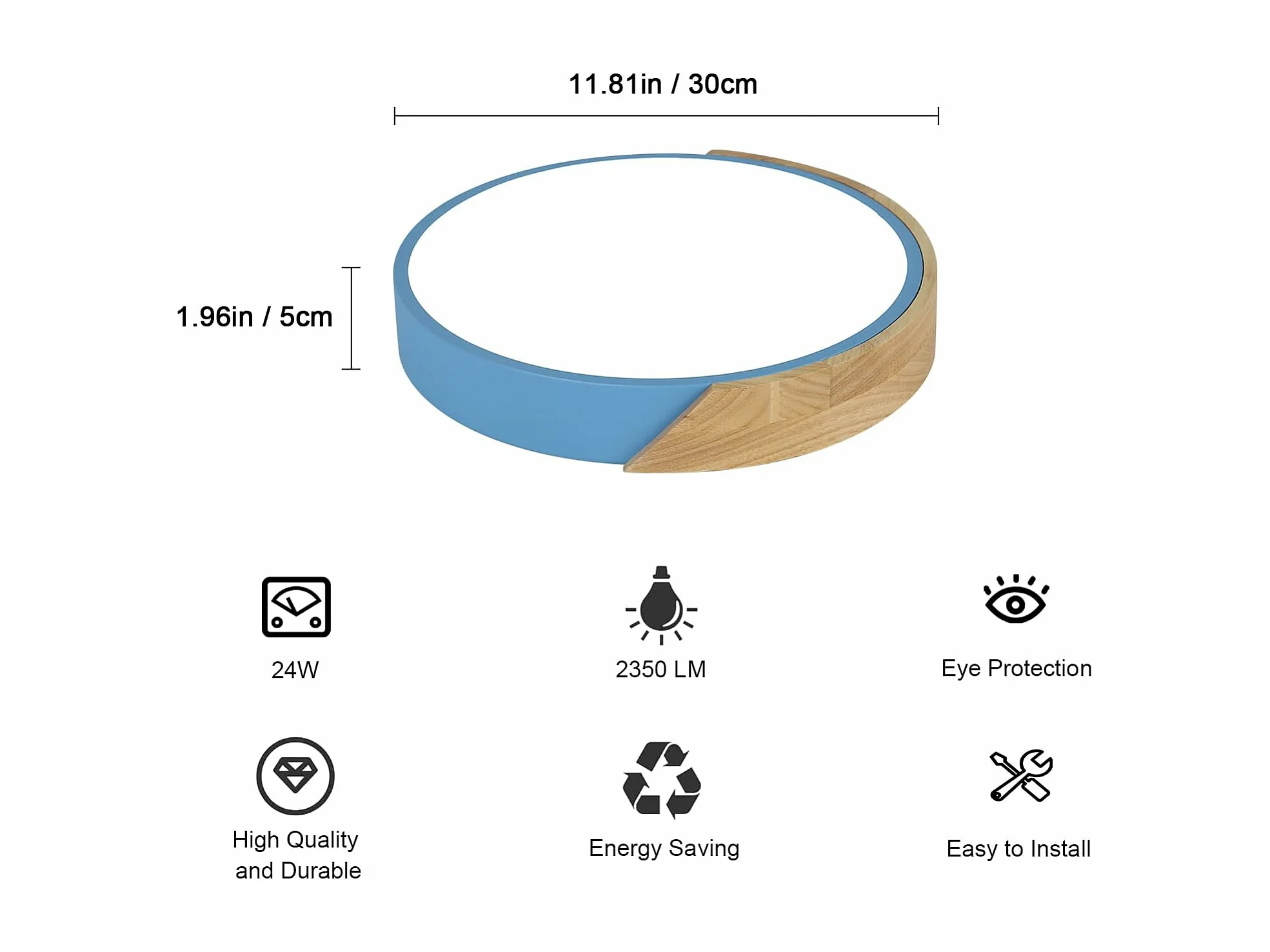 Plafonnier Rond LED Macaron Bleu pour Chambre d'Enfant, Salon, Couloir, Bureau - Éclairage Moderne 6000K, Diamètre 30CM