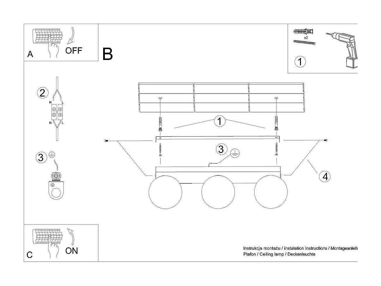 Plafonnier design noir avec verre fumé 3 lumières - Uvas