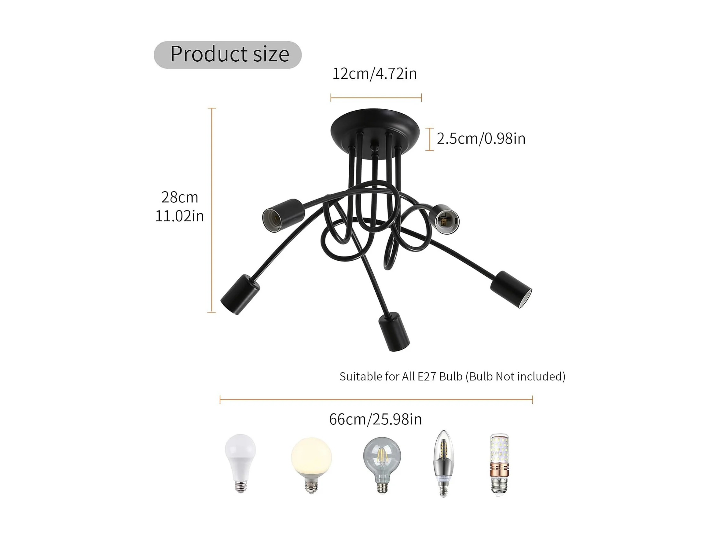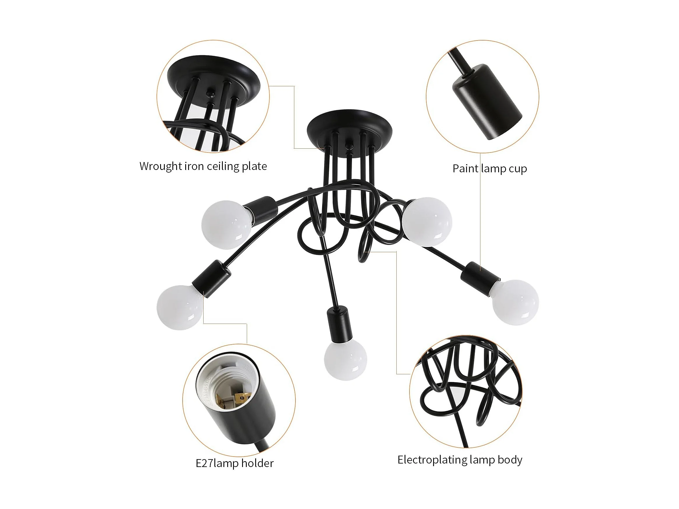 Plafonnier style industriel, suspension moderne en fer forgé, plafonnier noir 5 lumières E27 pour salon, chambre, cuisine (ampoule non incluse)