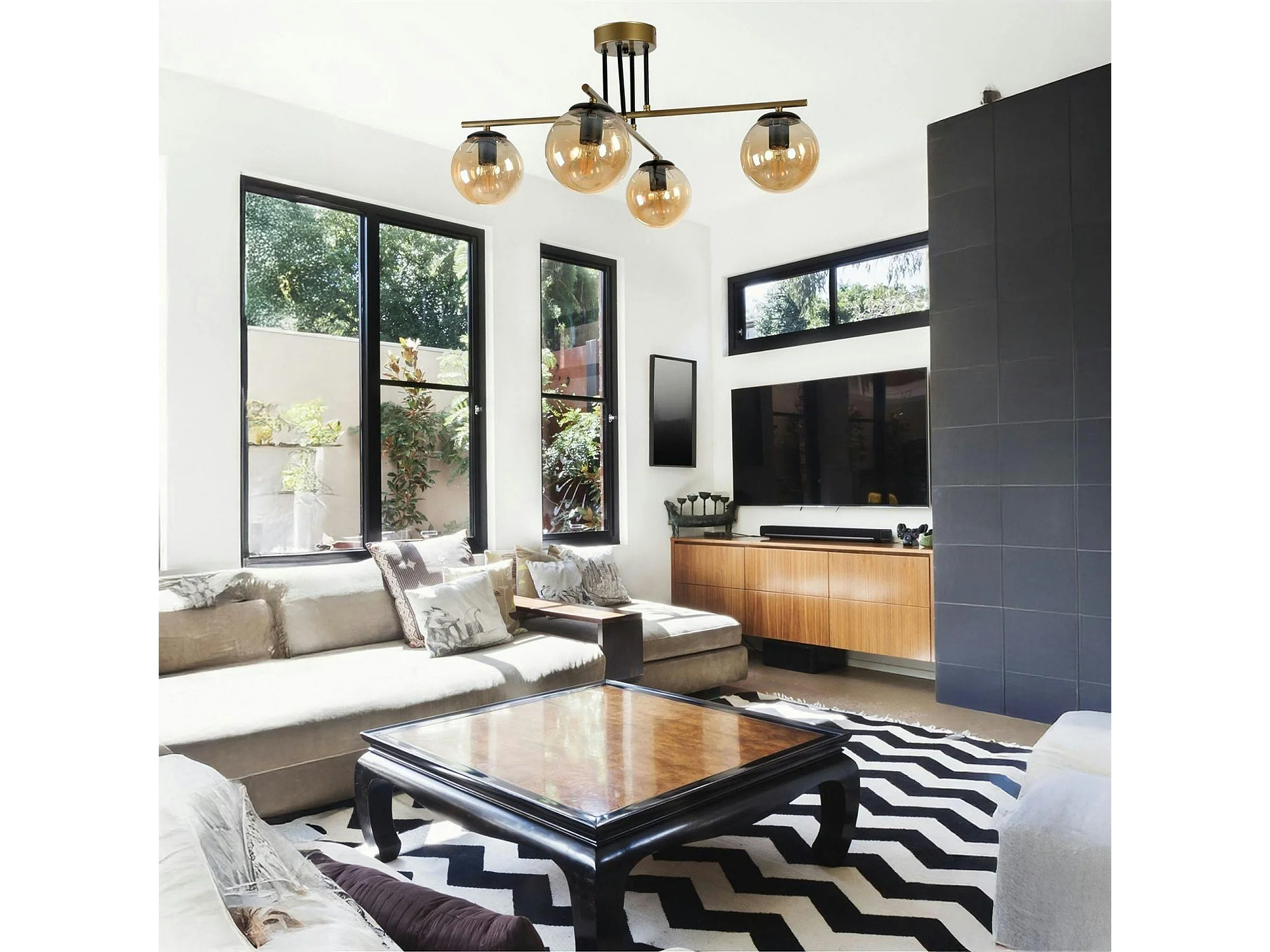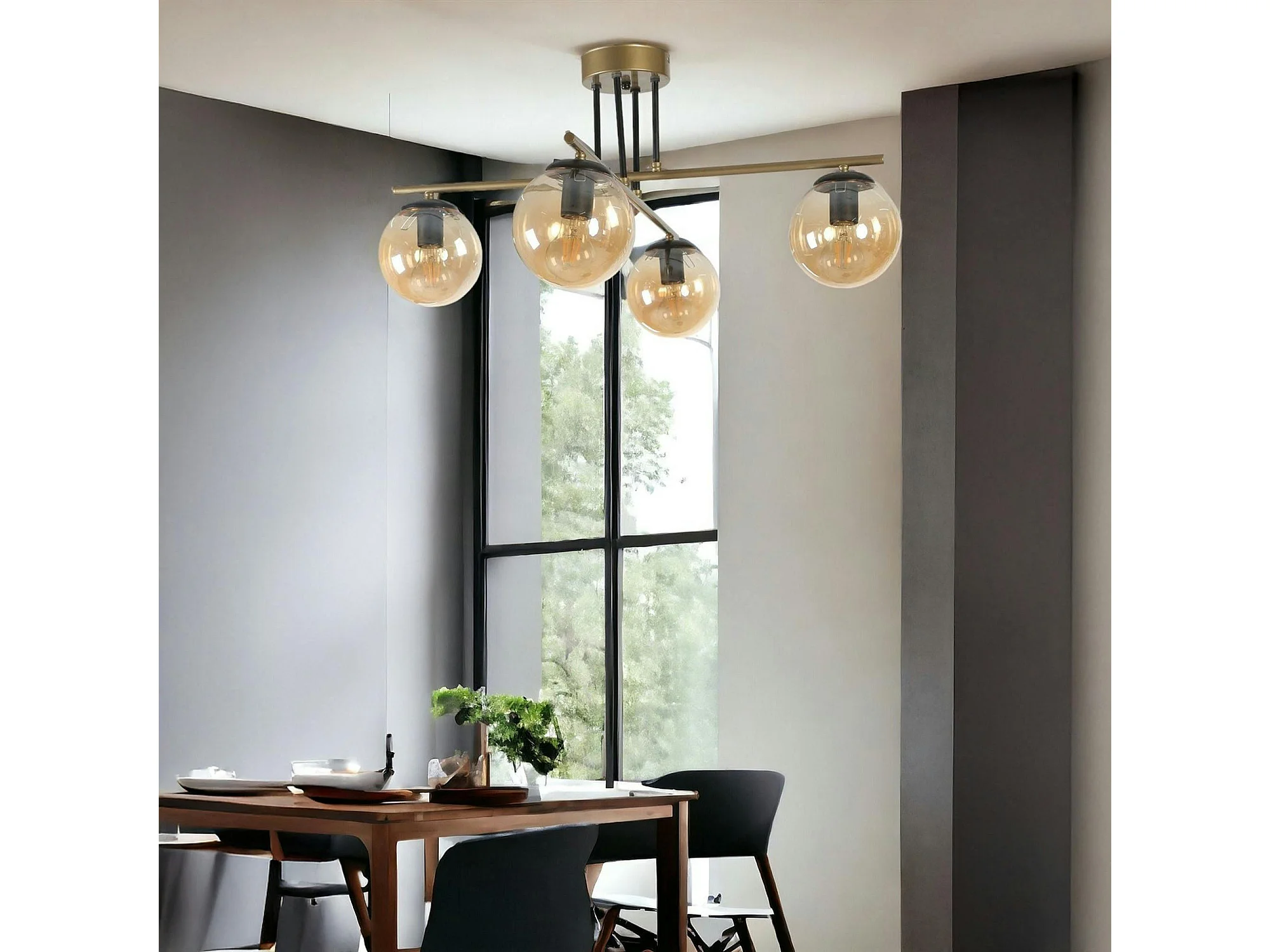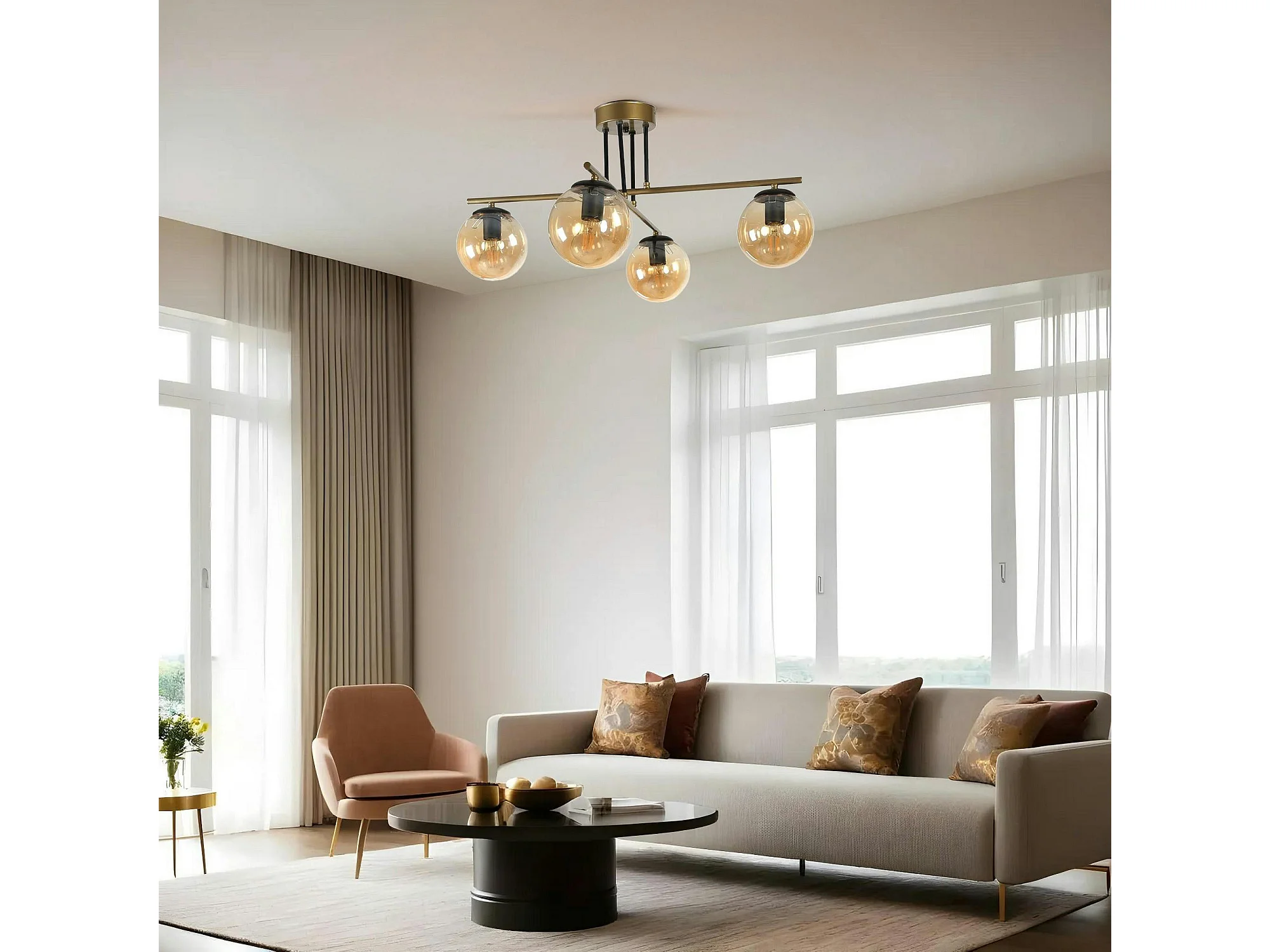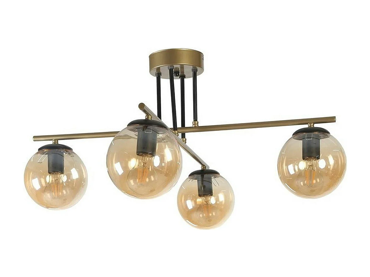 Suspension moderne dorée 4 globes verre ambré SIERRE