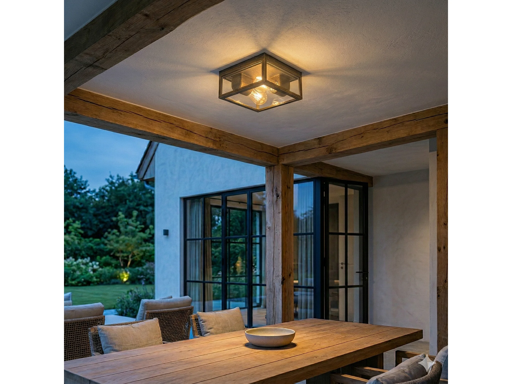 Plafonnier d'extérieur noir avec verre nervuré 2 lumières IP44 - Charlois