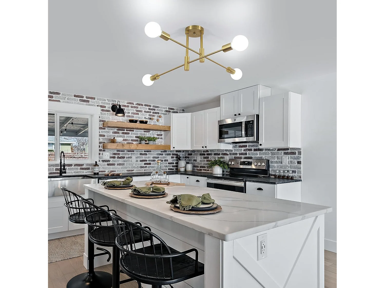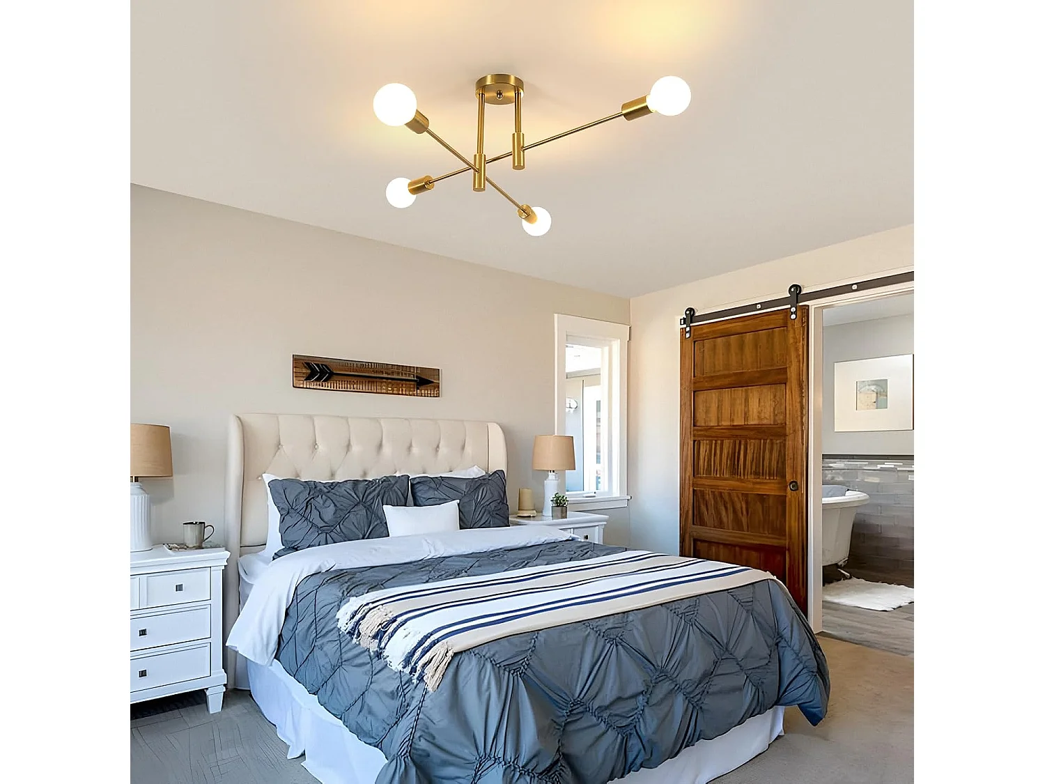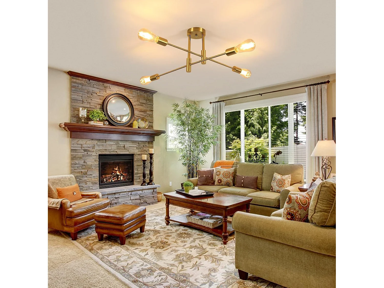 Plafonnier Vintage Lustre Industriel Or, 4 Lumières Max. 60 W Plafonnier pour Salon Chambre Salle à manger, Ampoules Non Incluses, Diamètre 71 cm