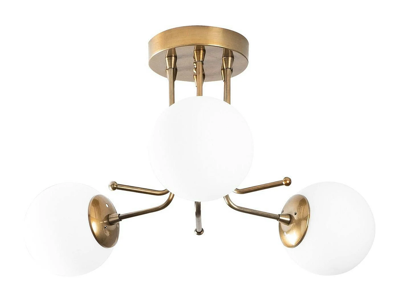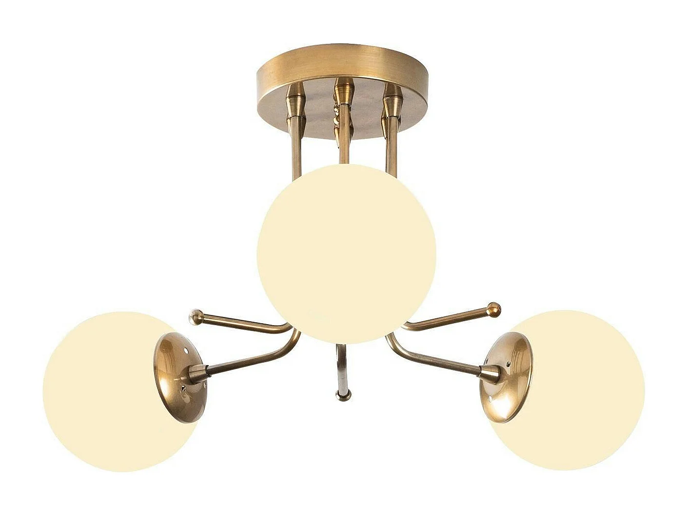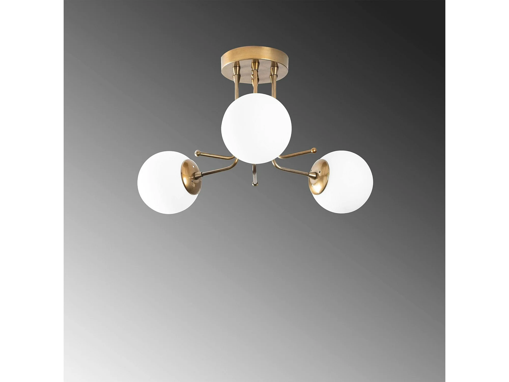 Plafonnier vintage métal doré 3 globes verre dépoli SIERRE