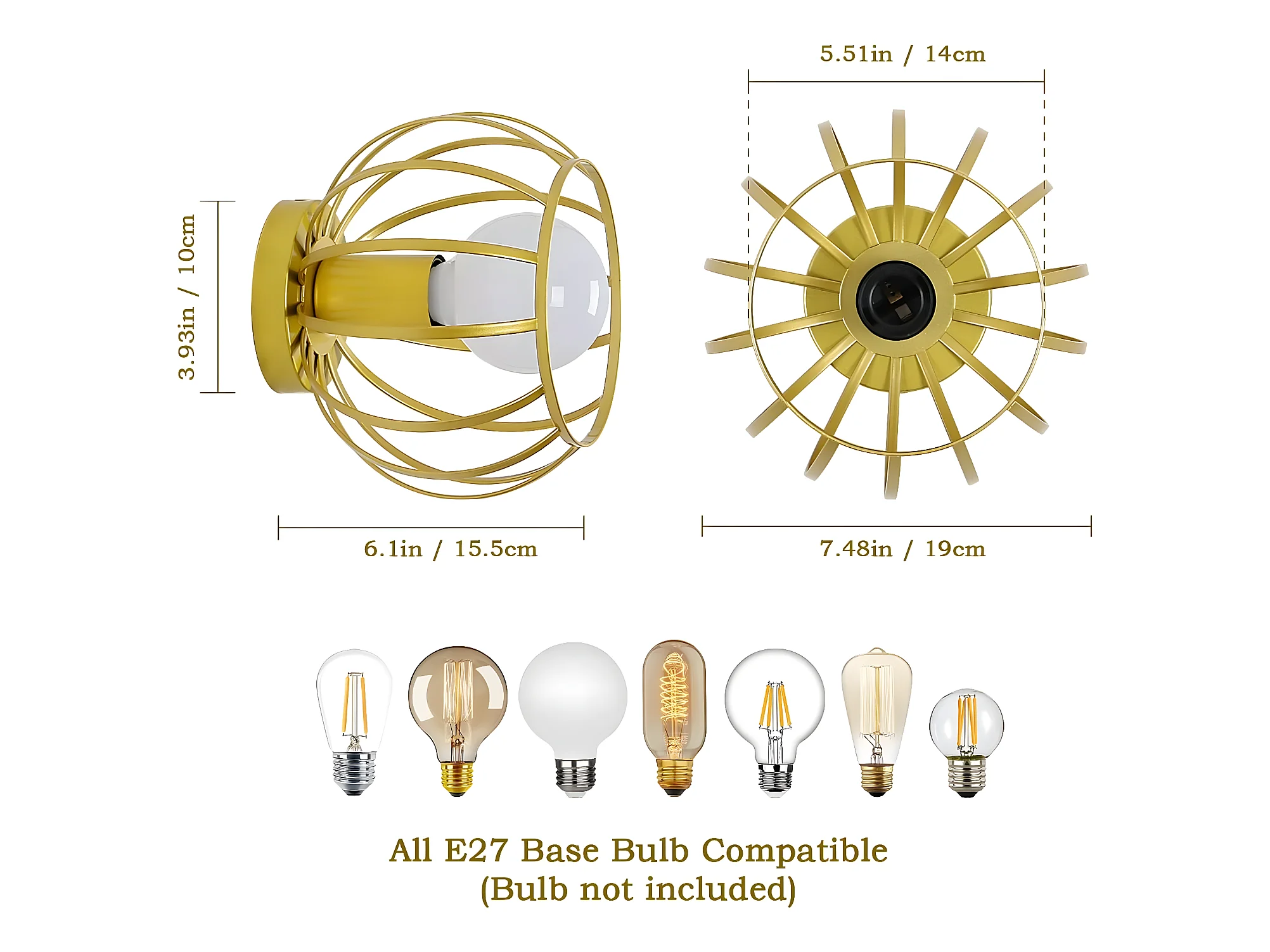 Plafonnier Industriel Vintage Luminaire E27 diamant fer or Rétro plafonniers Design Métal éclairage plafond pour Salon Chambre Café Bar Restaurent Entrée Couloir