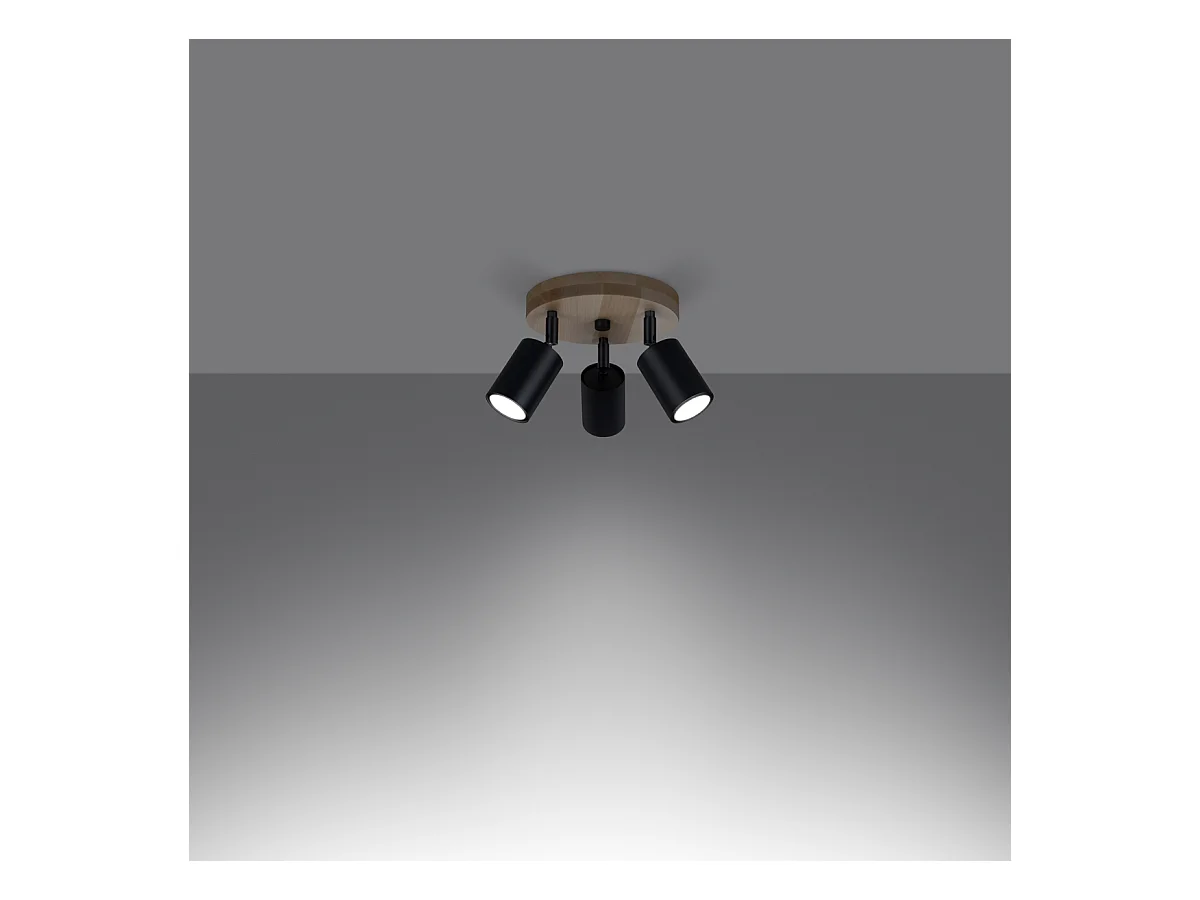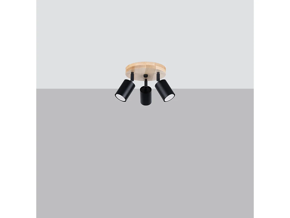 Plafonnier Zynelix scandinave en acier/bois naturel - 3 sources lumineuses 3000K - L.54 x H.17,2 cm - noir/bois naturel