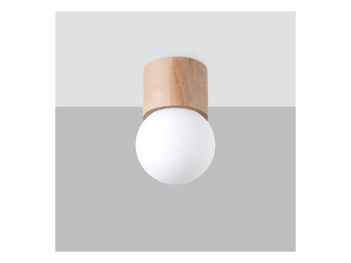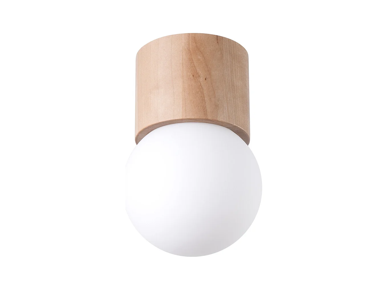 Plafonnier Solis Minimaliste En Bois/Verre - 1 Sources Lumineuses - L.12 X H.19 Cm - Bois Naturel/Blanc