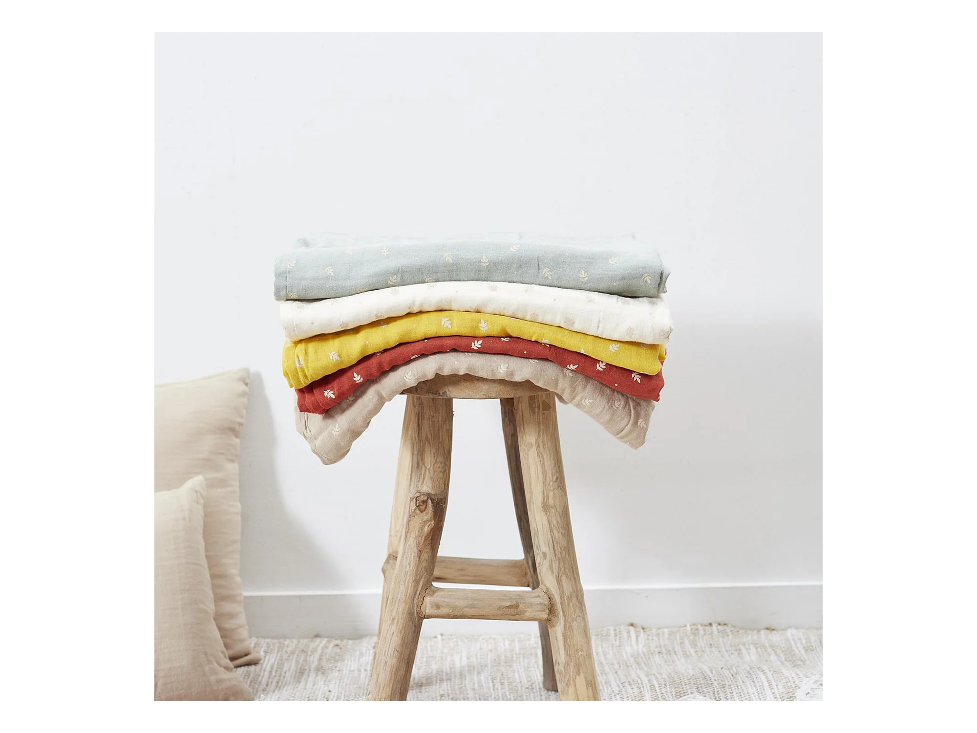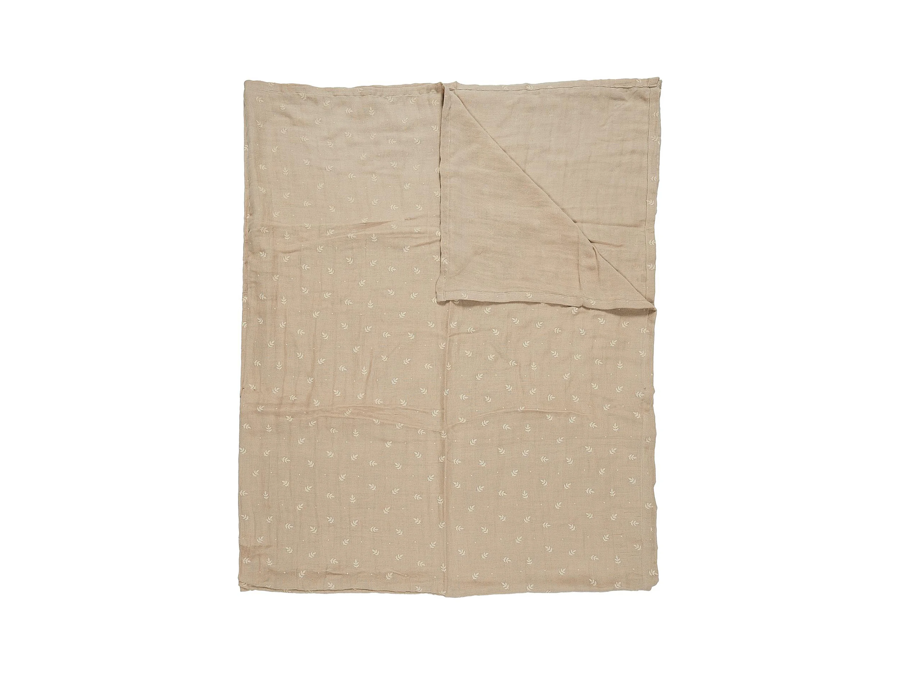 Plaid 120x150 cm LUCIE gaze de coton motif feuilles beige
