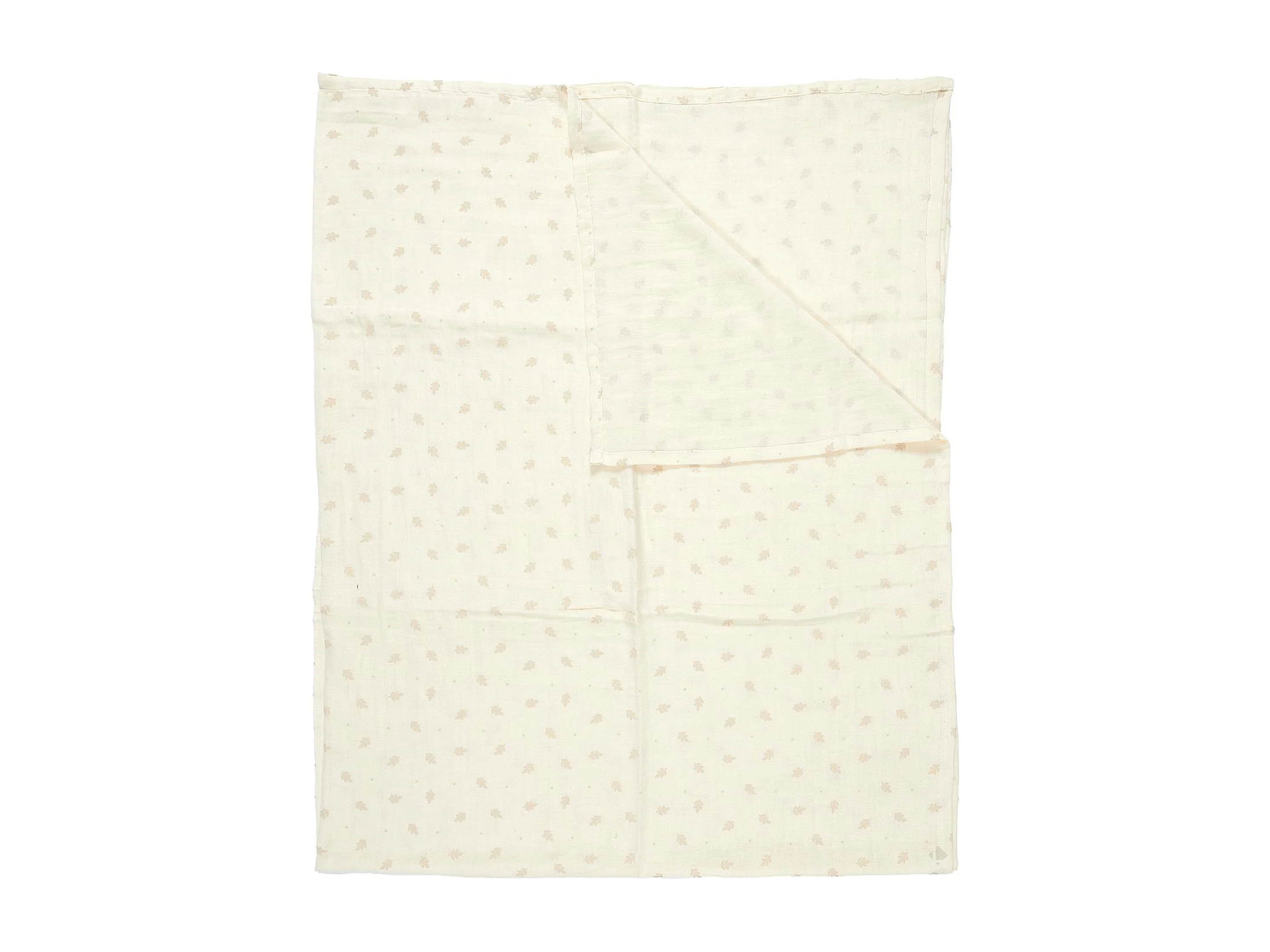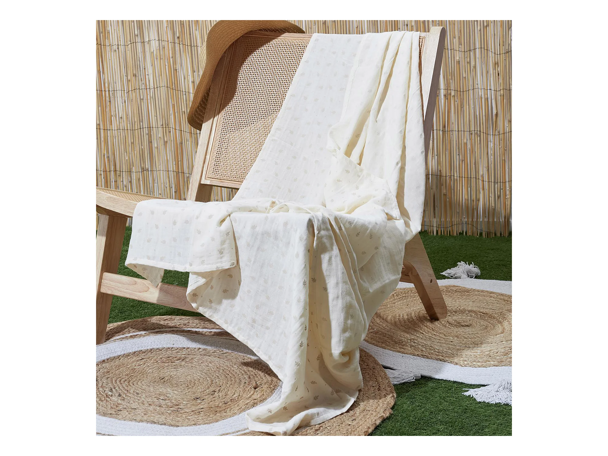 Plaid 120x150 cm LUCIE gaze de coton motif feuilles blanc