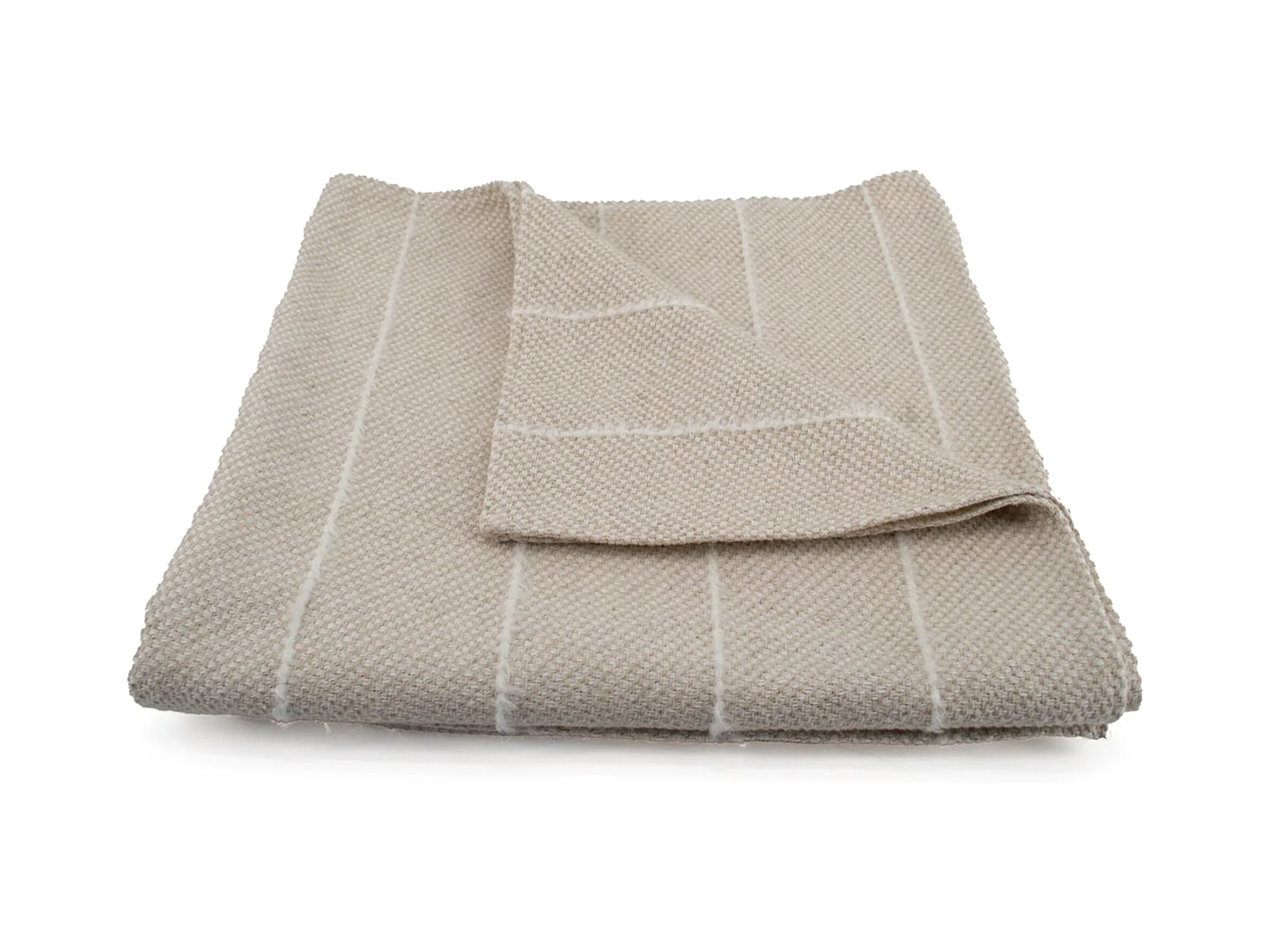 Plaid 125x180 cm ESTRELA gaze de coton et laine beige naturel