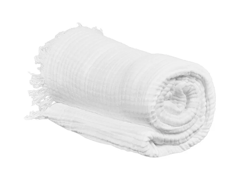 Plaid 180 x 220 cm en quadruple gaze de coton blanc - PEPA 2