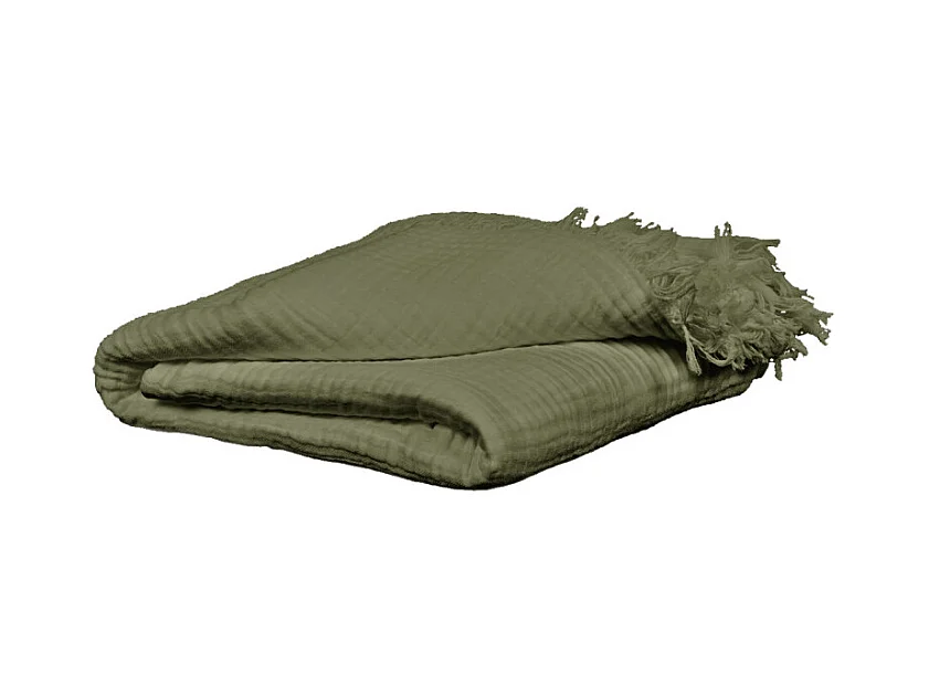 Plaid 180 x 220 cm en quadruple gaze de coton vert - PEPA 2