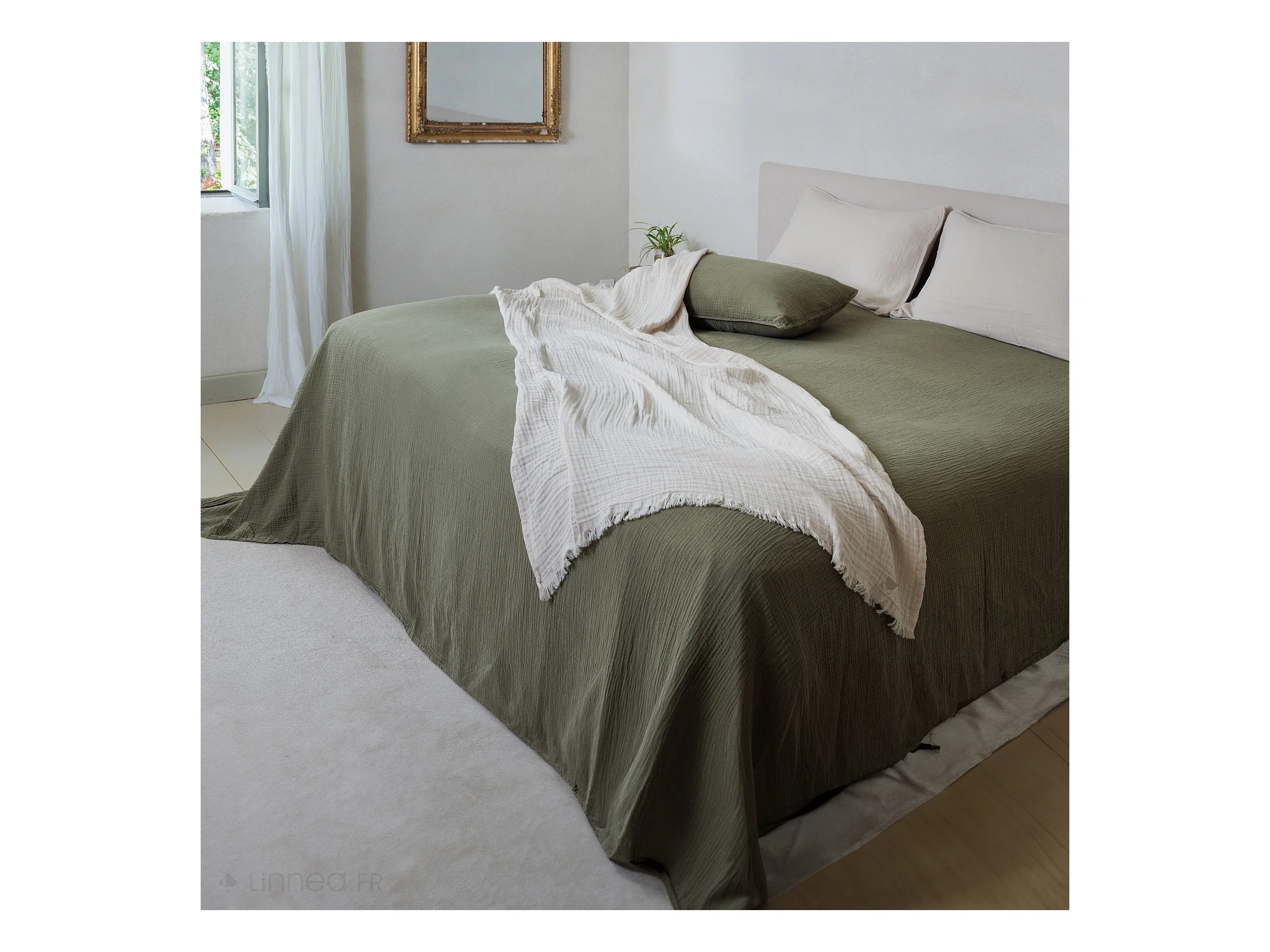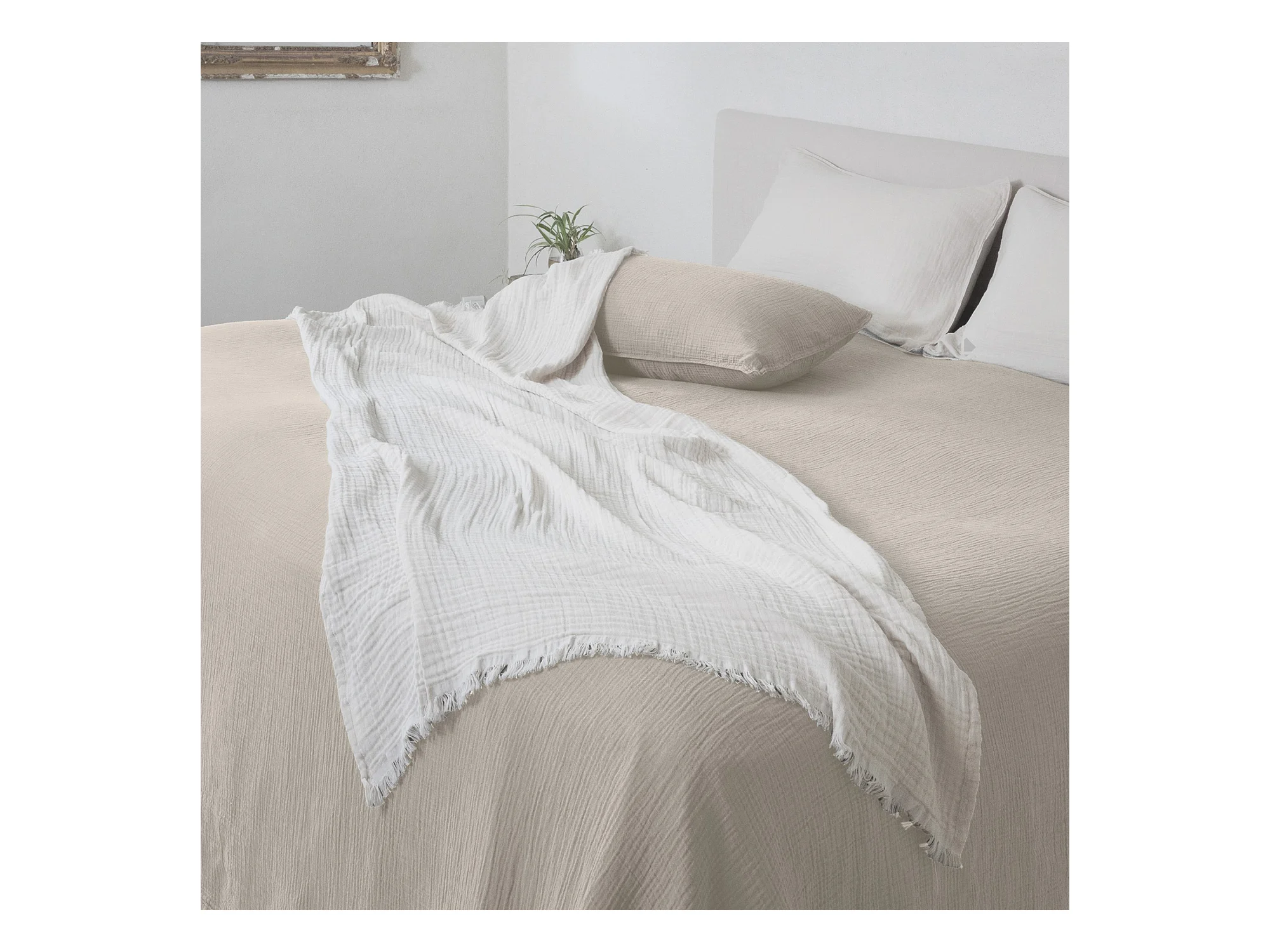 Plaid 180x240 cm en mousseline de coton collection PAROS beige ficelle