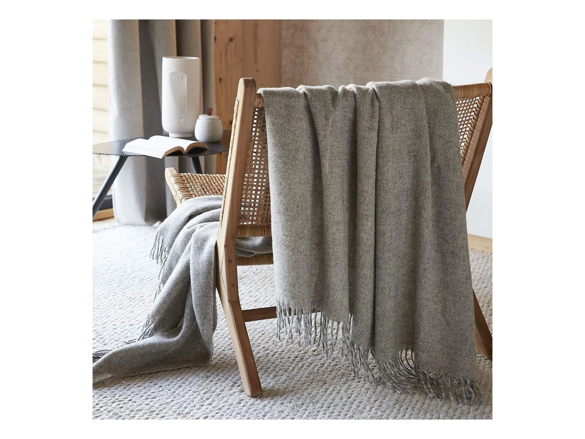 Plaid à franges en laine uni gris clair 140 x 200 cm
