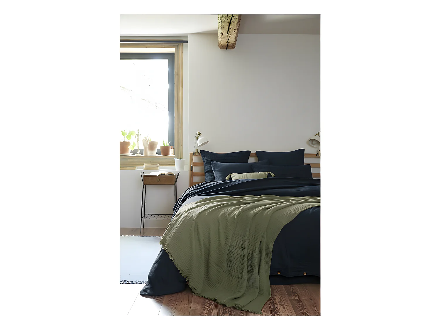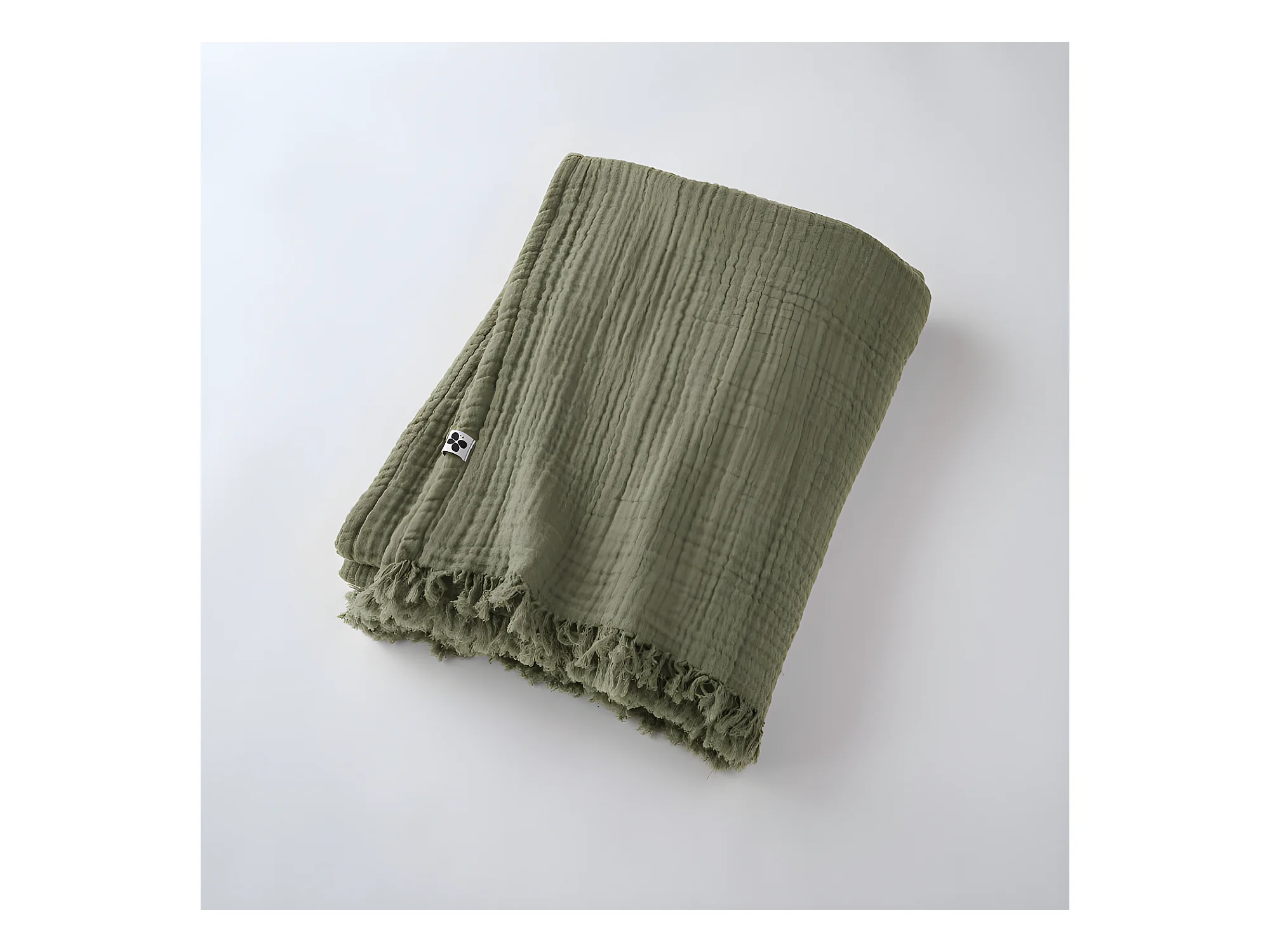 Plaid 130 x 160 cm en quadruple gaze de coton vert - PEPA 1