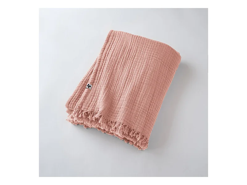 Plaid 130 x 160 cm en quadruple gaze de coton rose - PEPA 1