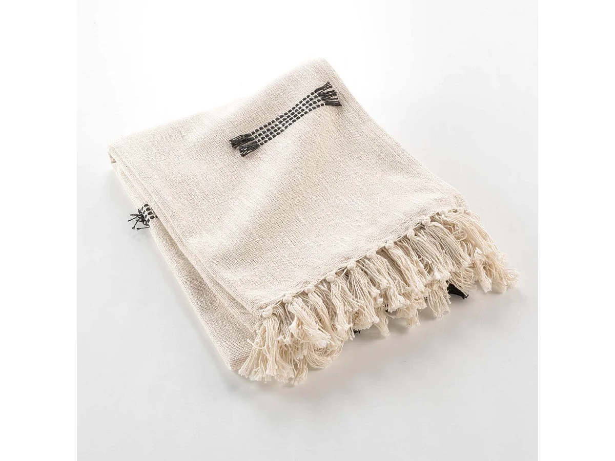Plaid à Franges Tissé "Juline" 125x150cm Naturel