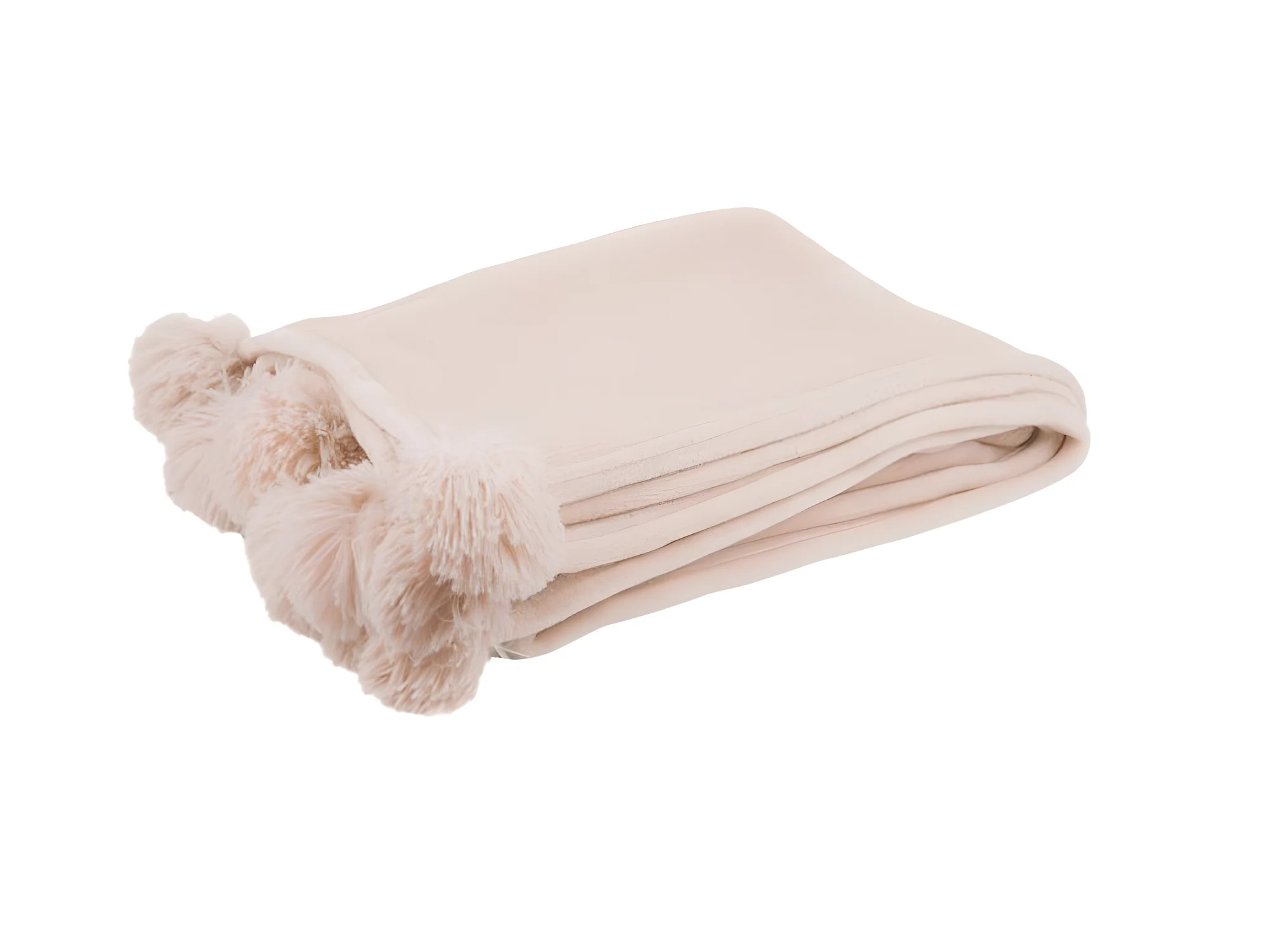 Plaid Déco à Pompons "Polyes" 130x170cm Rose Poudré