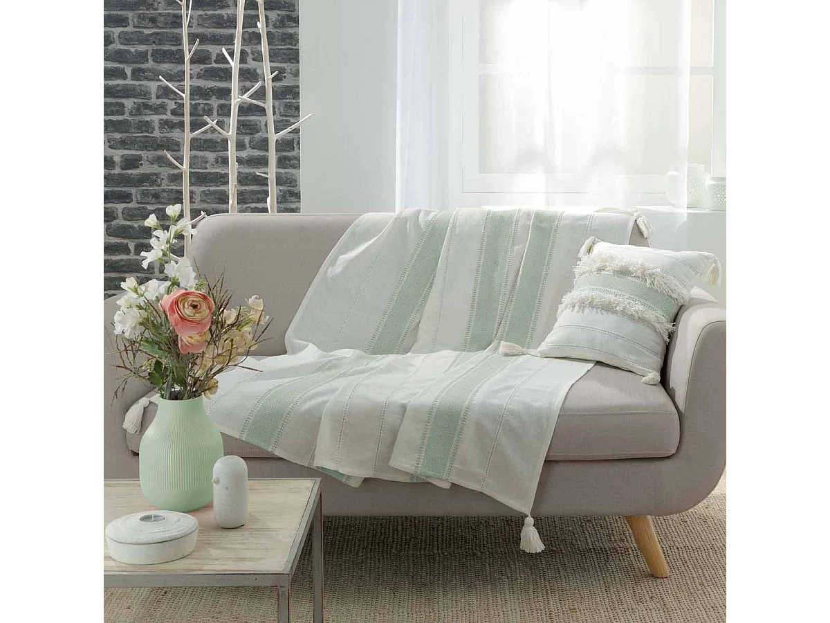 Plaid en coton Amalia Vert clair 125x150 cm