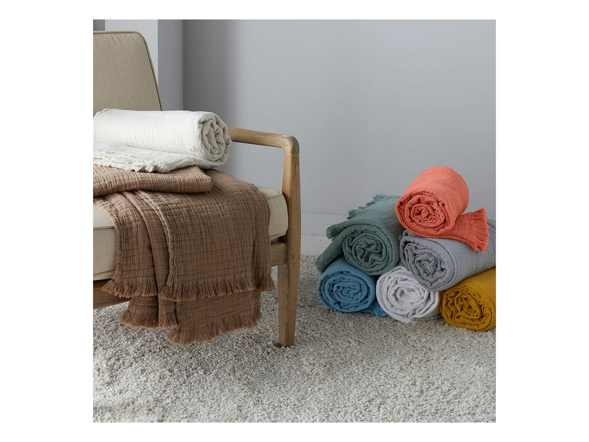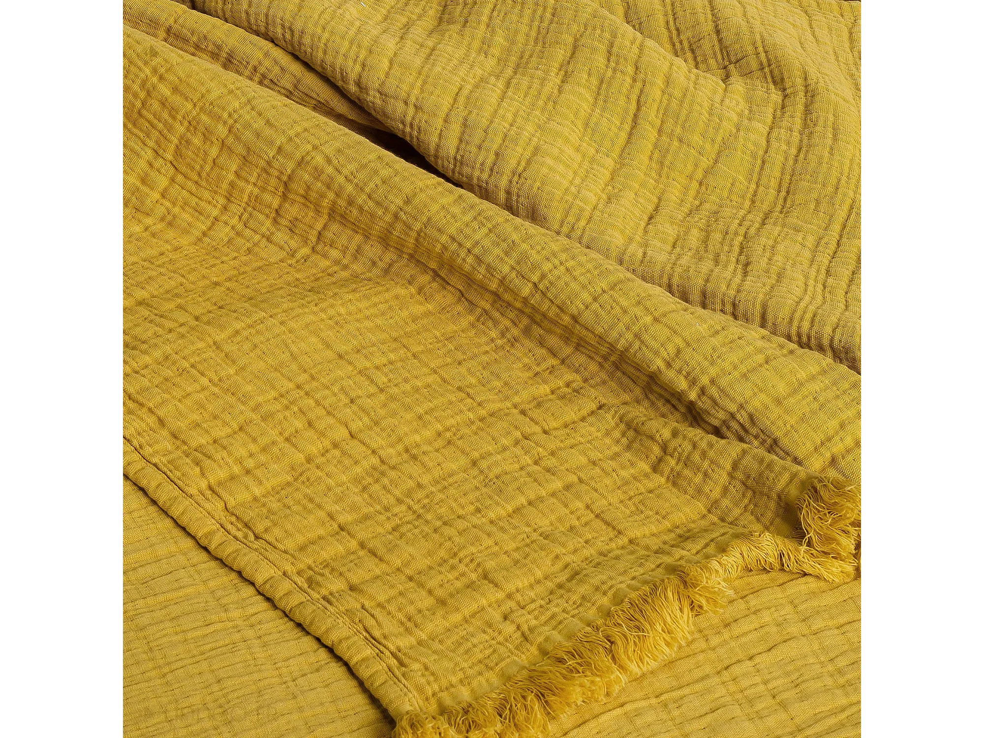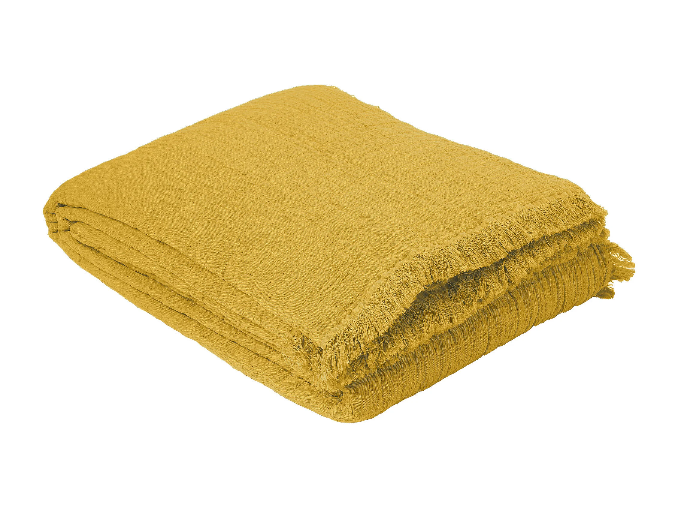 Plaid avec franges 125x180 cm BREHAT 100% gaze de coton jaune miel