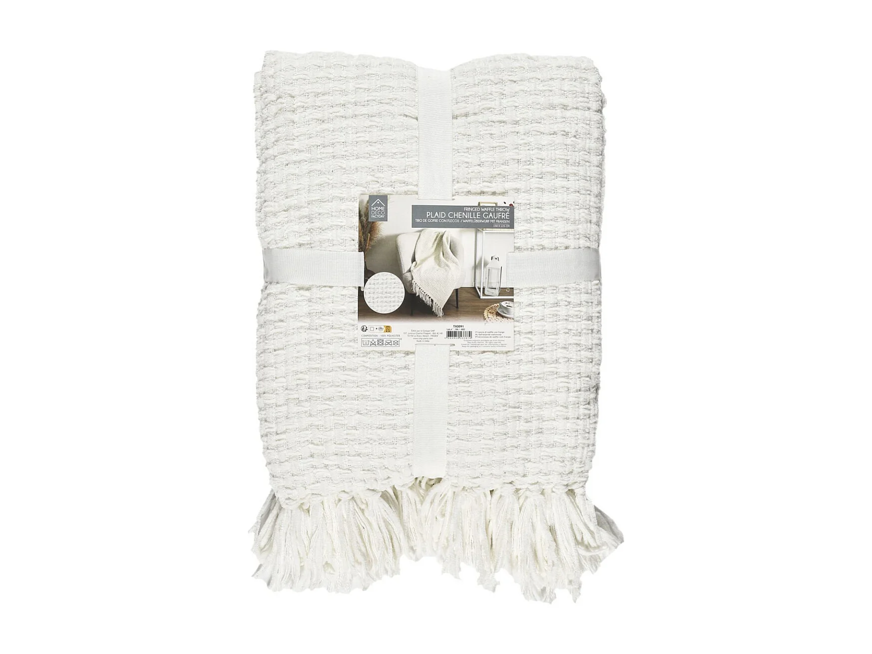 Plaid Blanc Chenille Gaufre 125x150cm Blanc