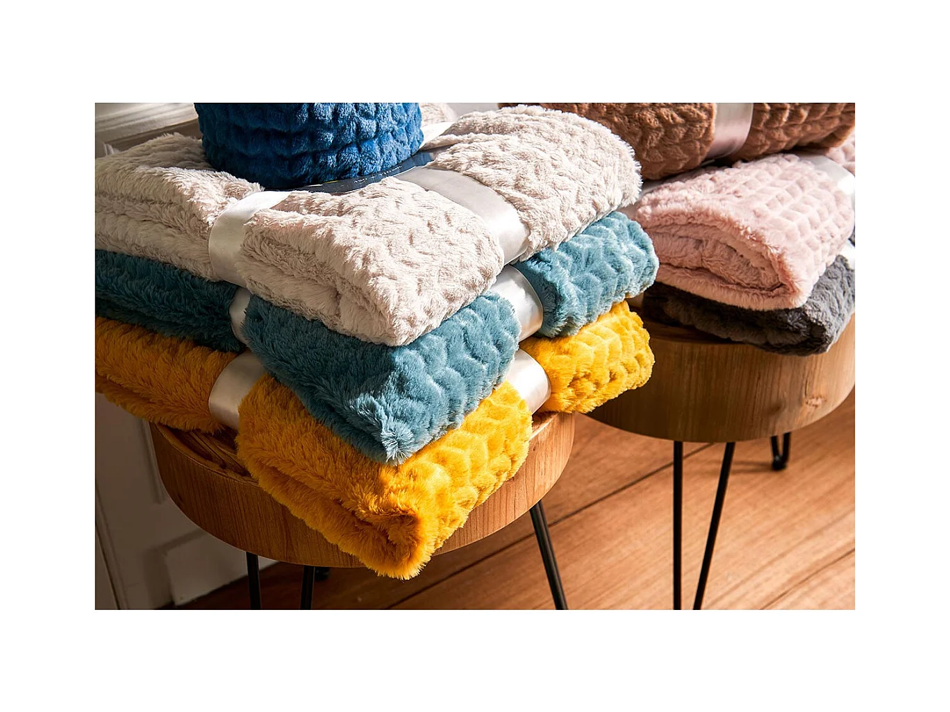 Plaid Flanelle Fourrure Jaune Moutarde 180 x 230 cm