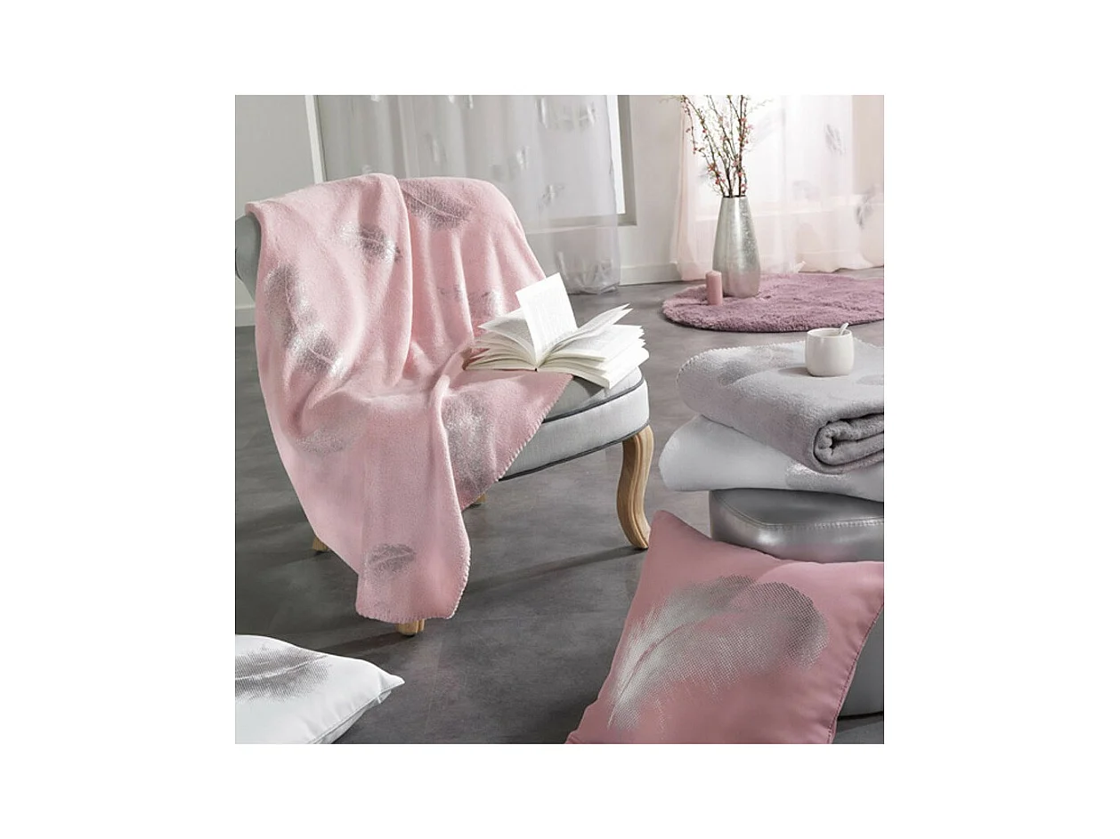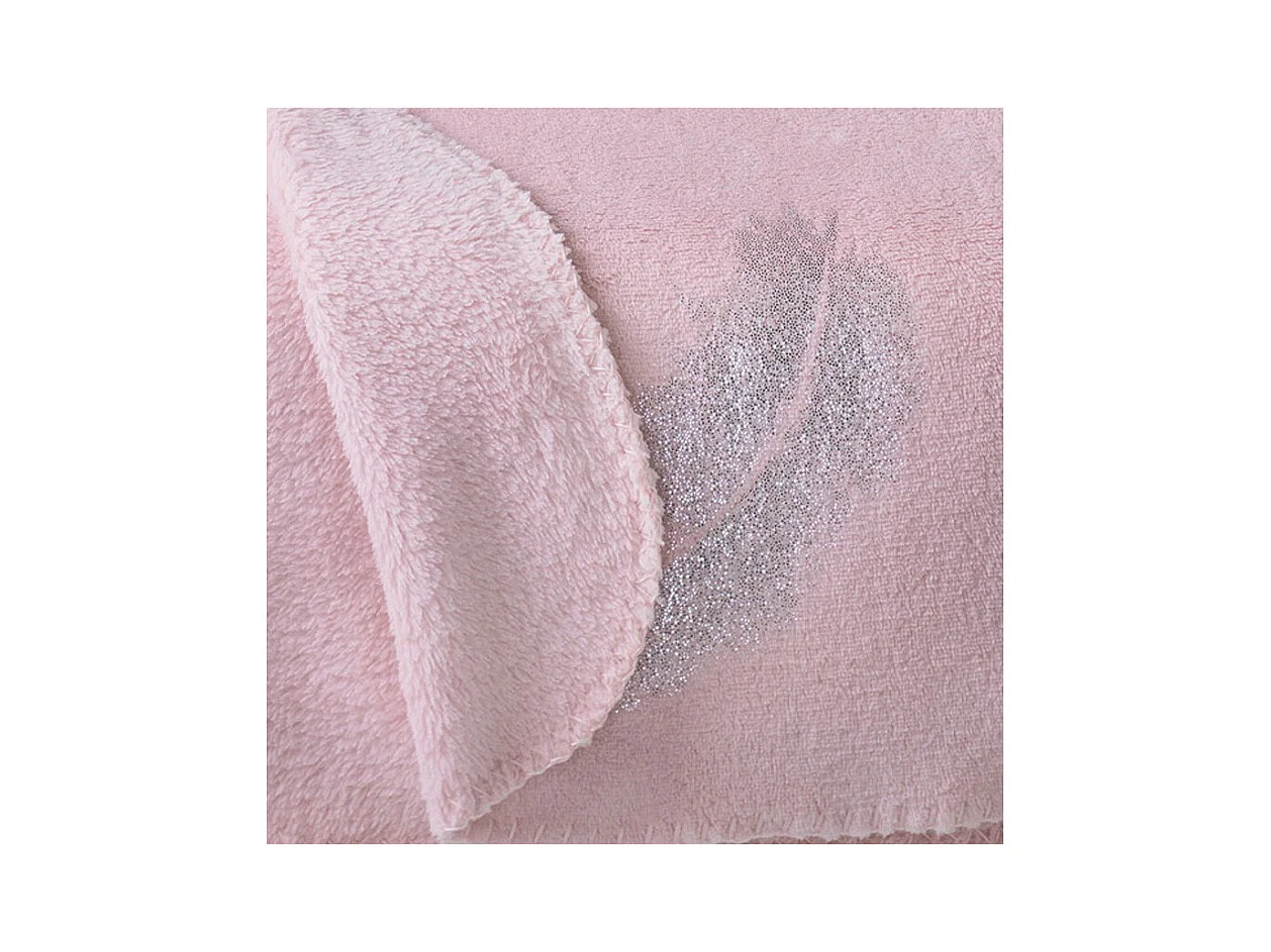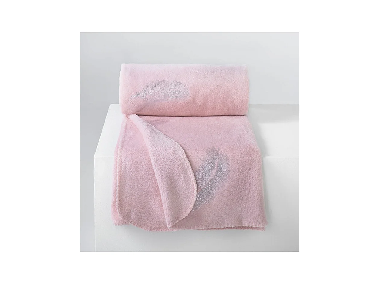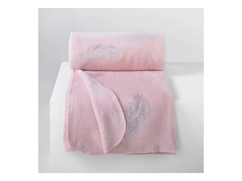 Plaid, couverture en polyester coloris rose clair - L. 230 x P. 180 x H. 2 cm