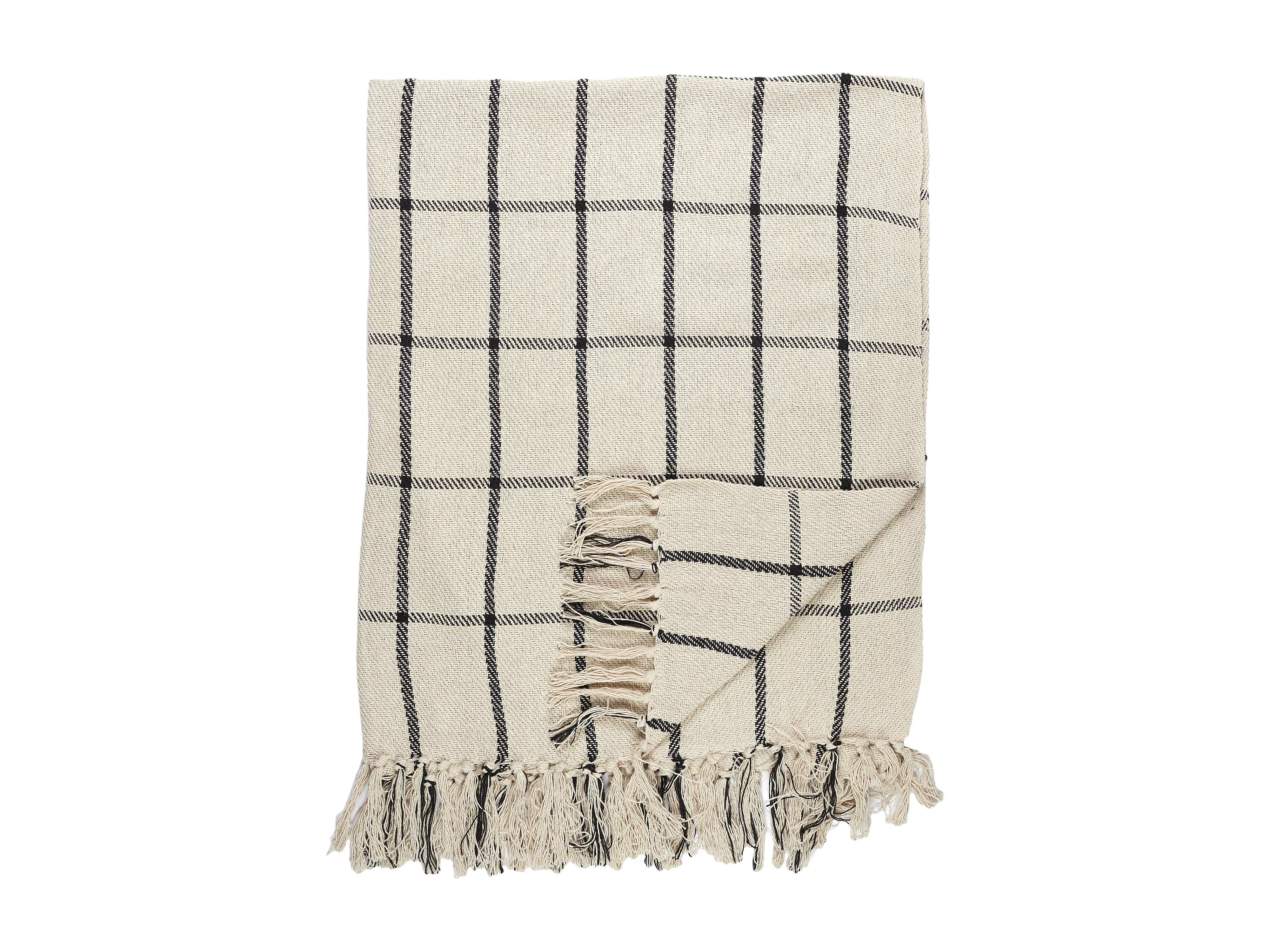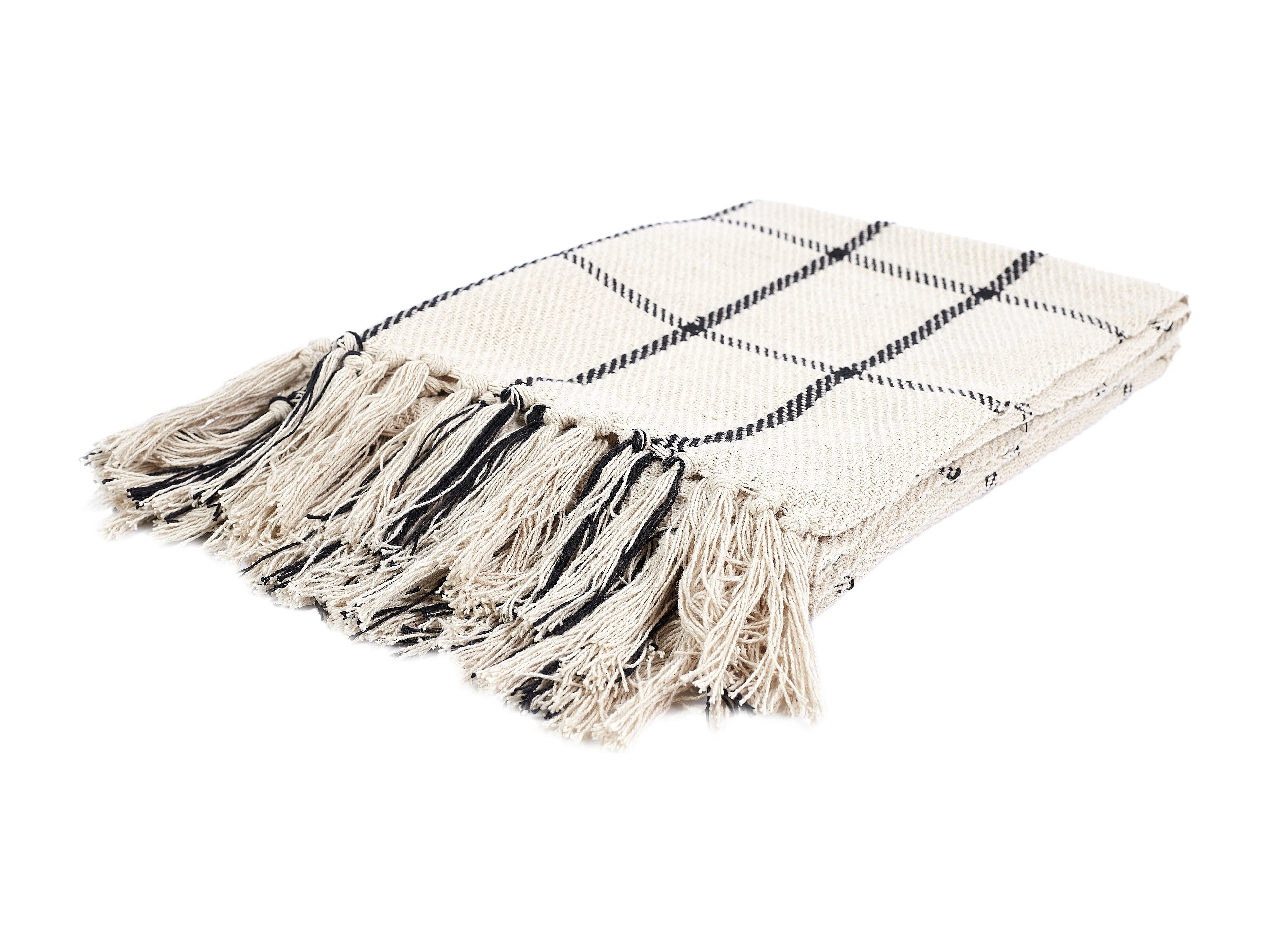 Now's Home - Plaid En Coton Tisse Main Mouchete Beige Noir Franges 125x150 Sherpa