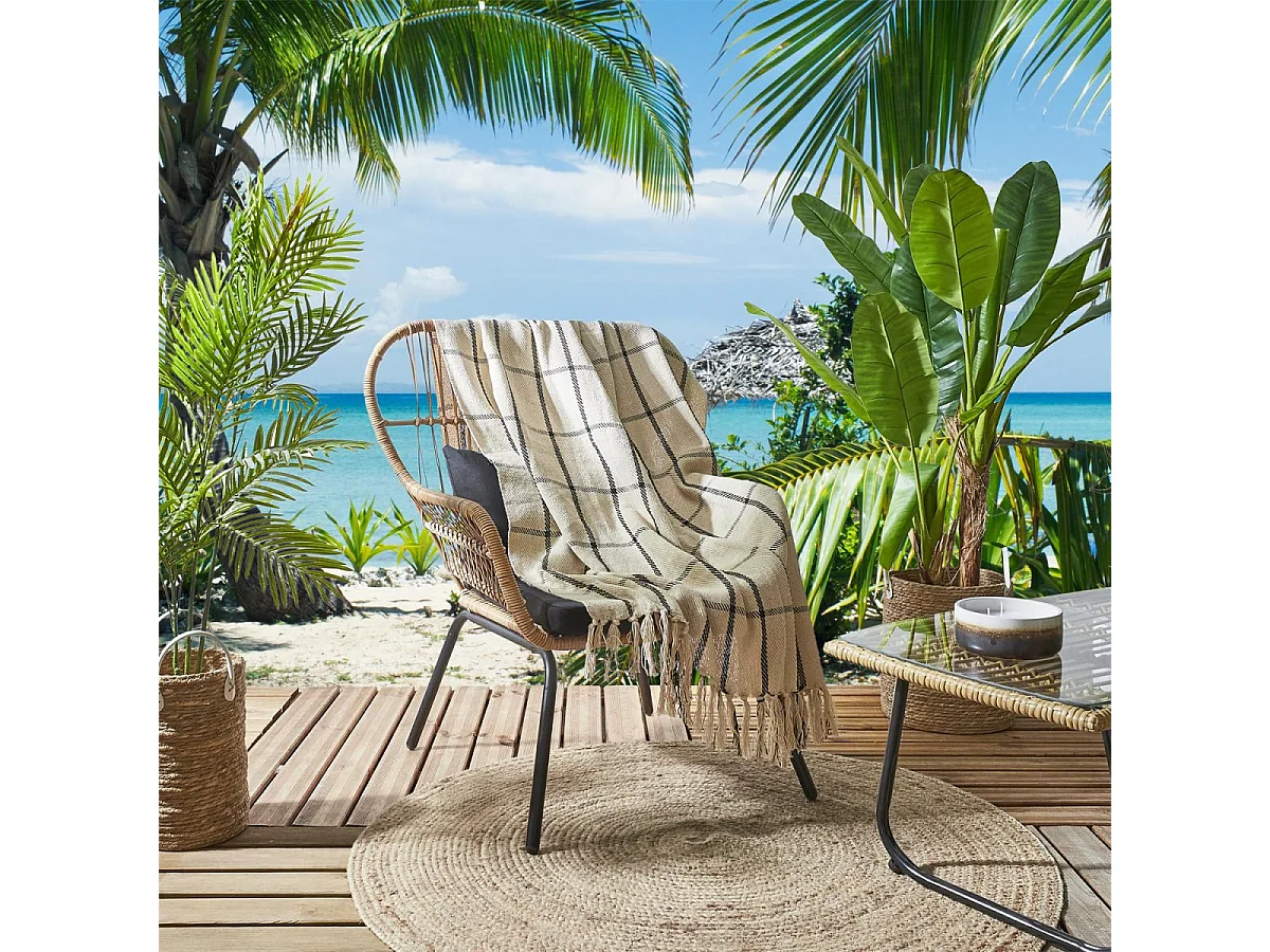 Plaid Coton Imprime Beige Et Noir 150x120cm Beige, Noir