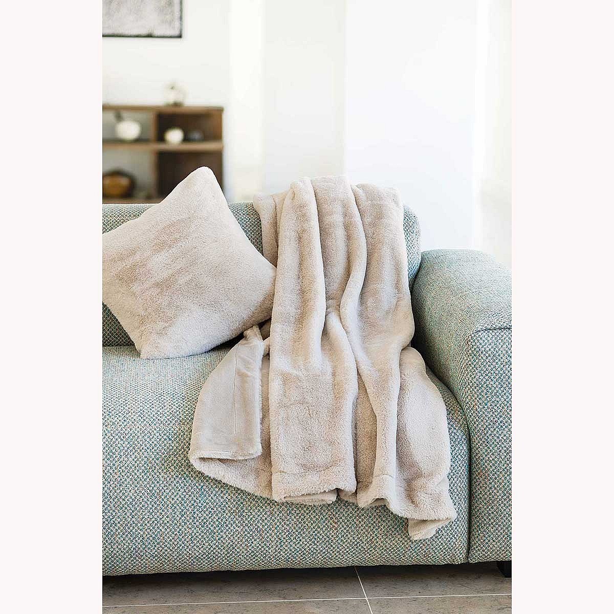 Plaid en polyester 120x150 cm FLEUR DE LUNE fausse fourrure avec lanières beige