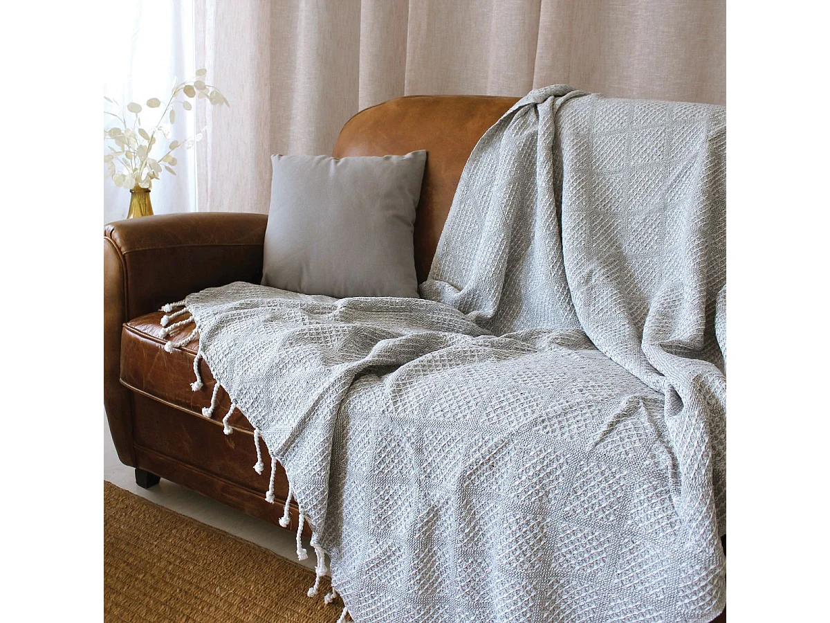 Plaid à Franges en Coton "Dune" 130x160cm Gris Clair