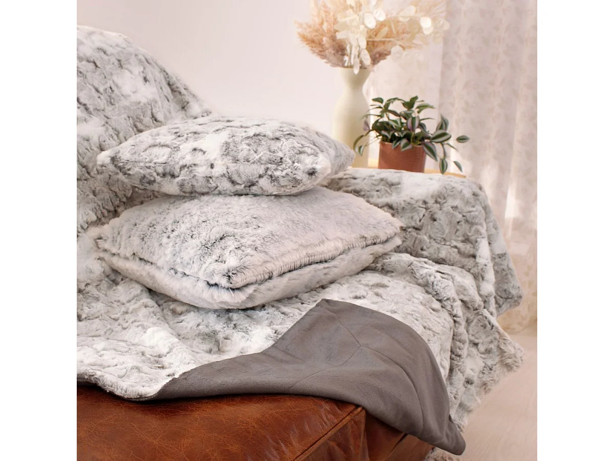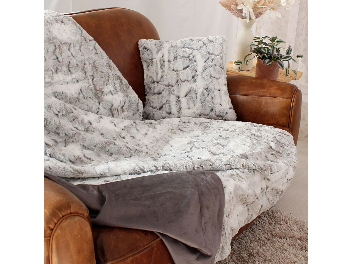 Plaid Imitation Fourrure "Écorce" 125x150cm Gris