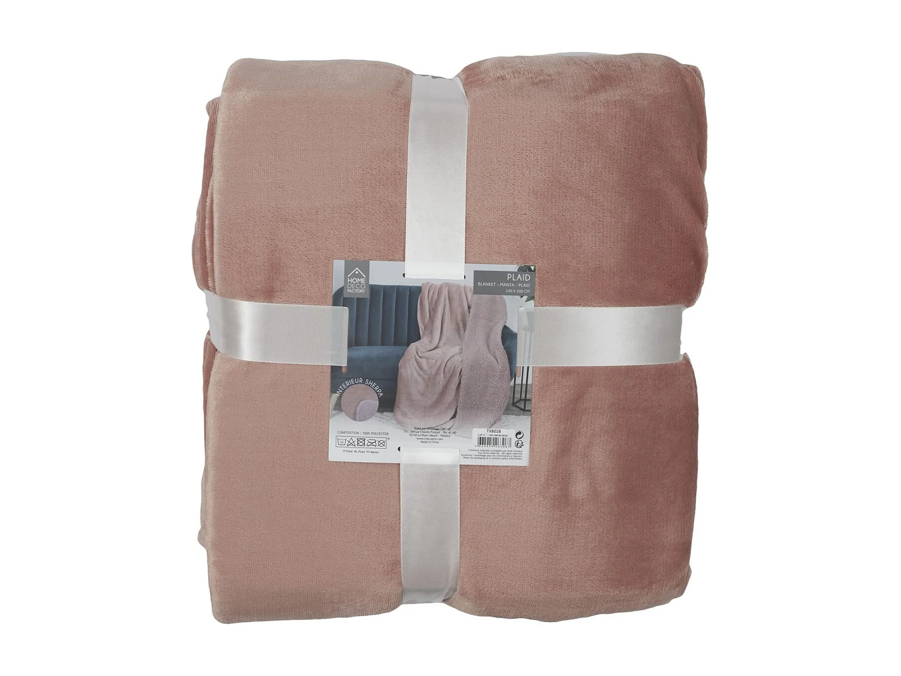 Plaid Flanelle Sherpa Peche Xxl 140x200cm Orange