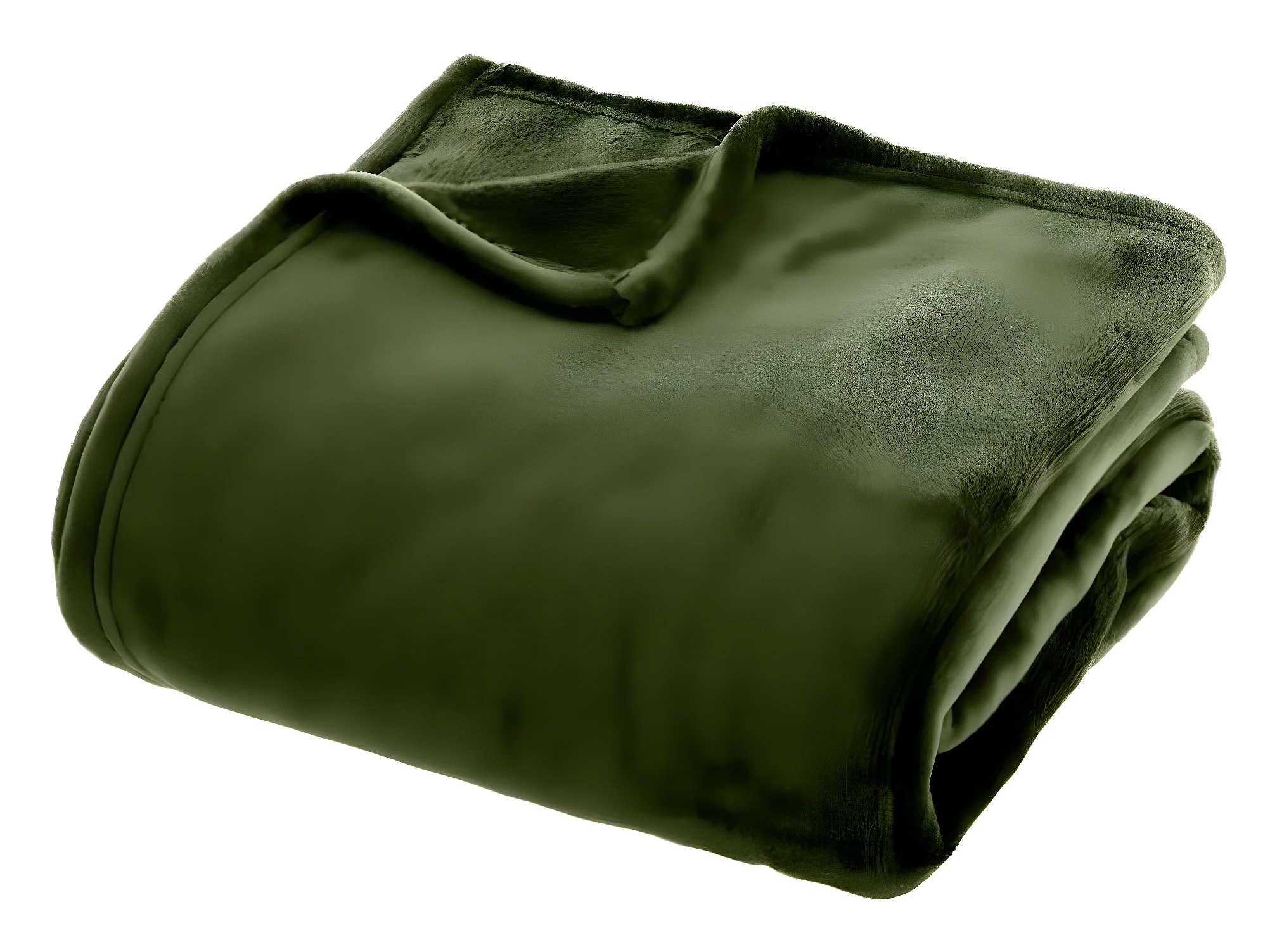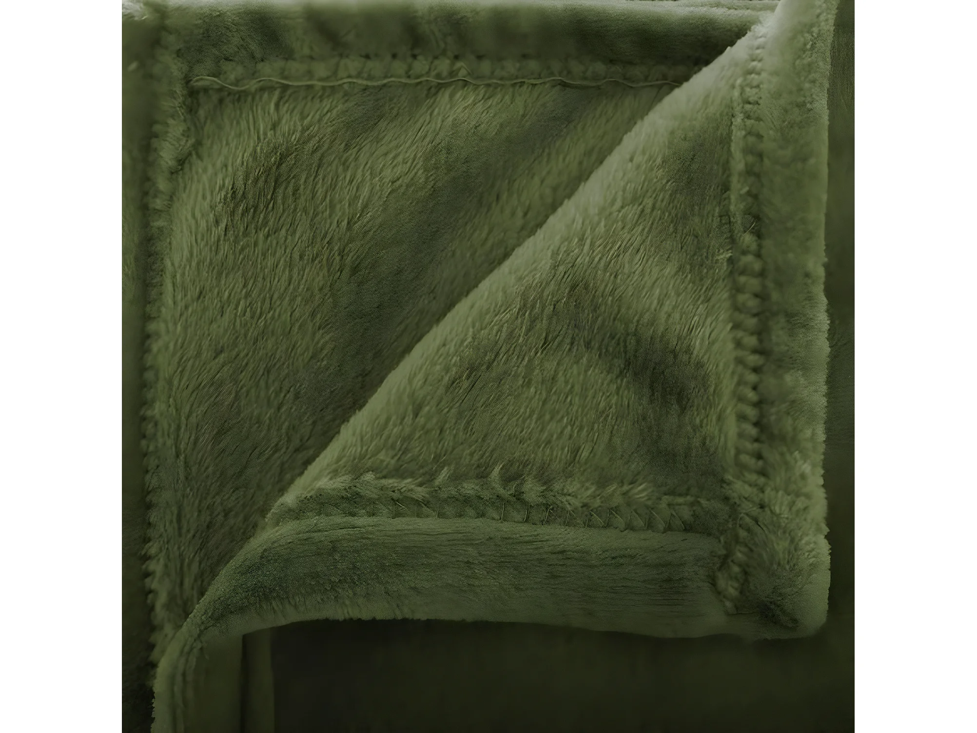 Plaid en polyester coloris vert kaki - Longueur 230 x Profondeur 180 x Hauteur 1 cm