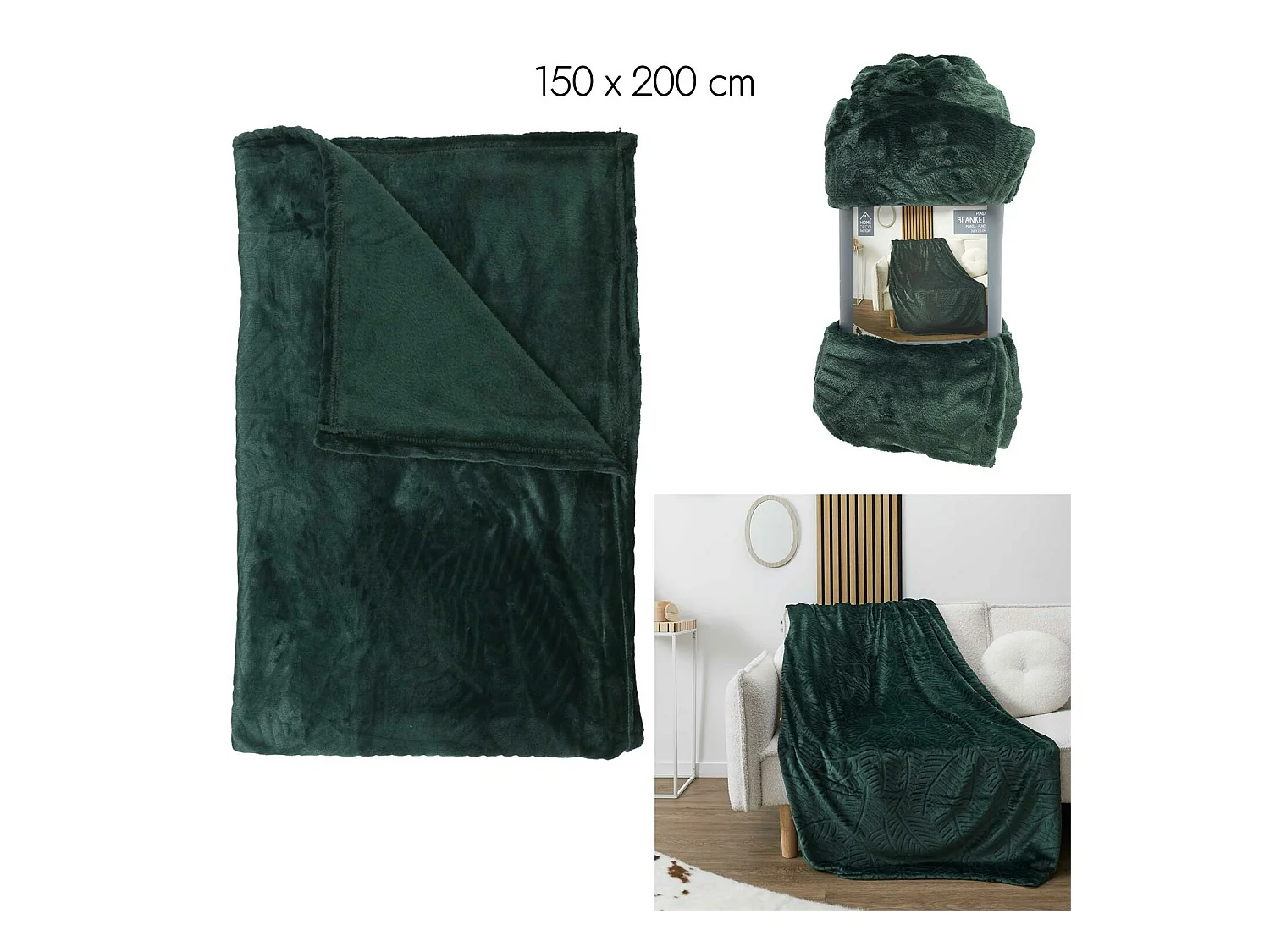 Plaid Flanelle Embosse Vert Sapin 150x200cm Vert