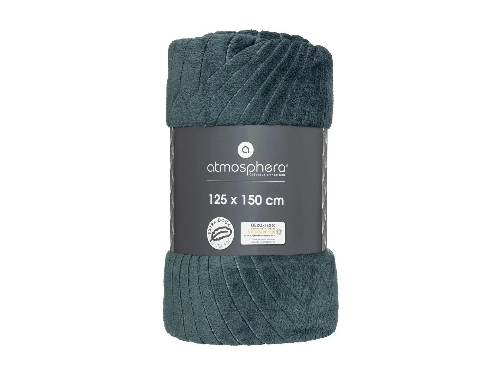 Plaid Flanelle Vert Cèdre motifs art déco en relief 125 x 150 cm