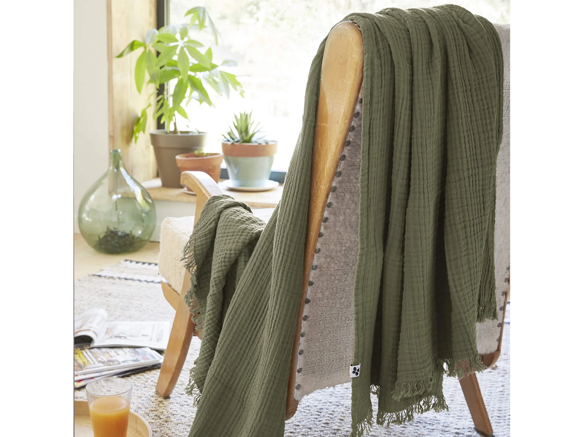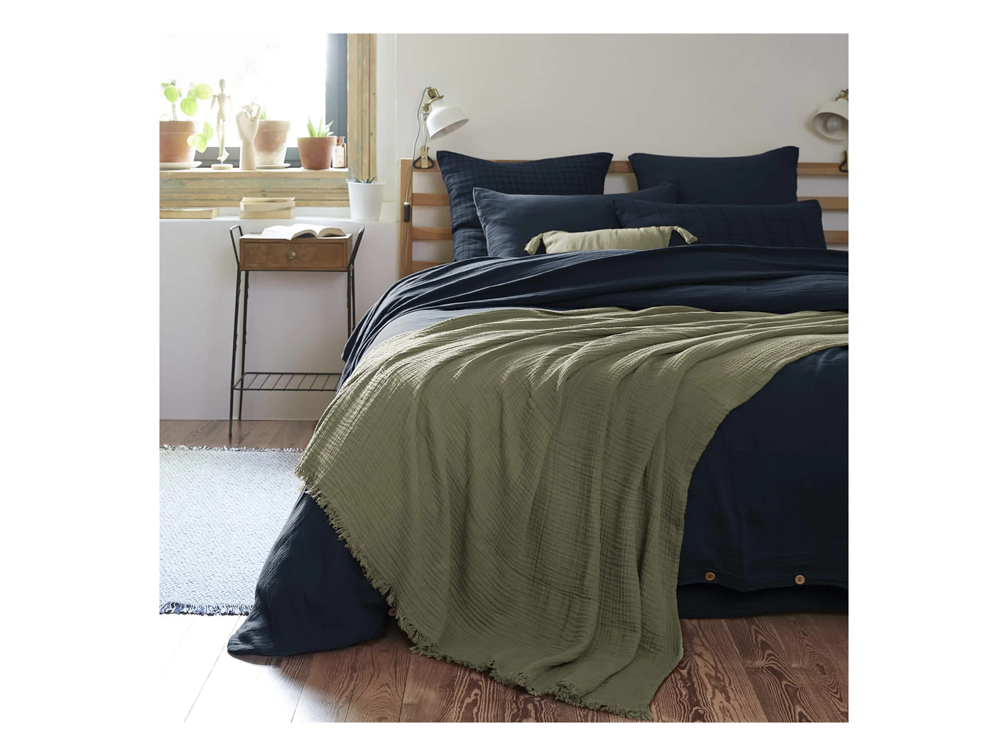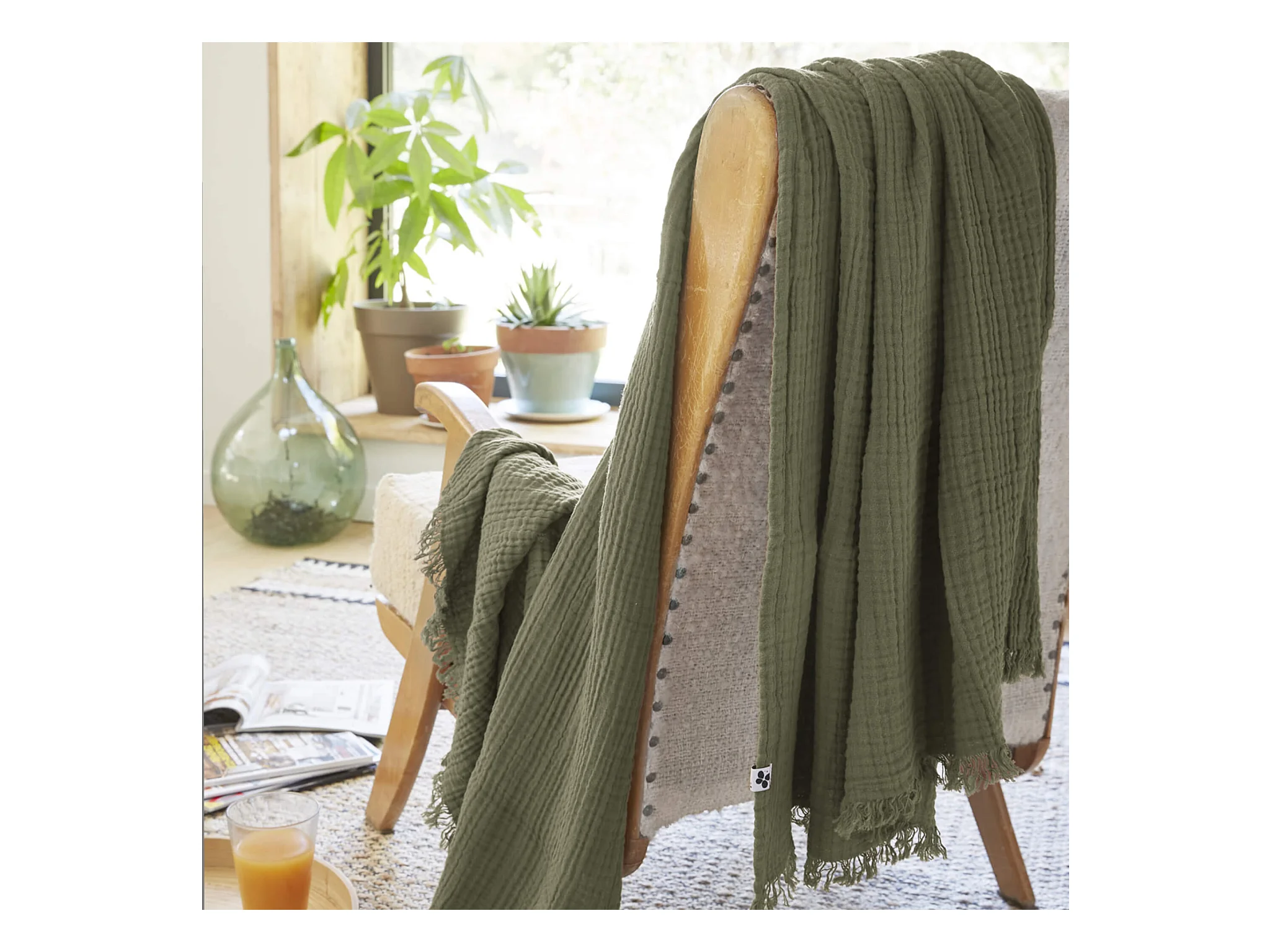 Plaid 180 x 220 cm en quadruple gaze de coton vert - PEPA 2