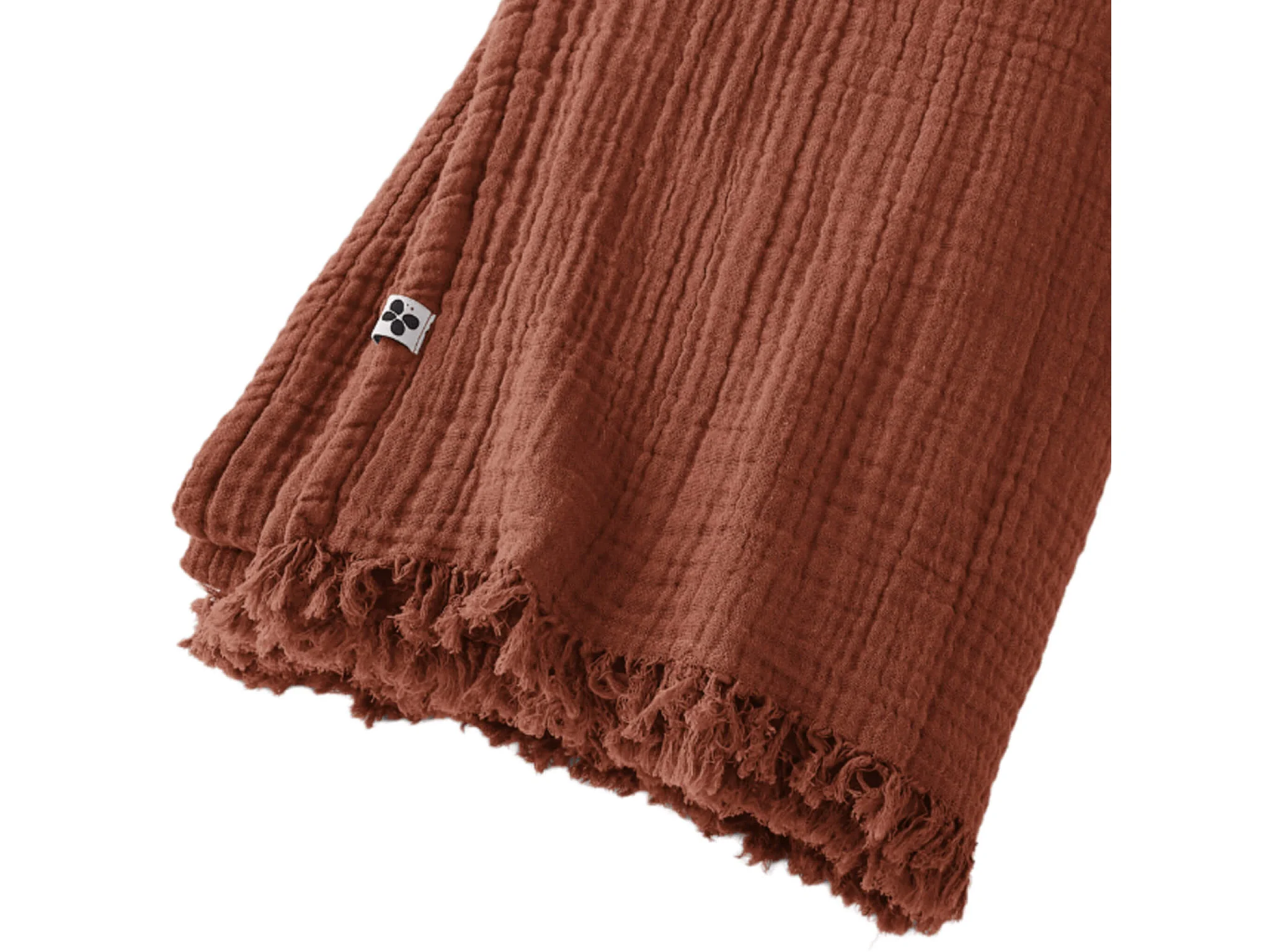 Plaid gaze de coton à franges orange terracotta 130x160 cm
