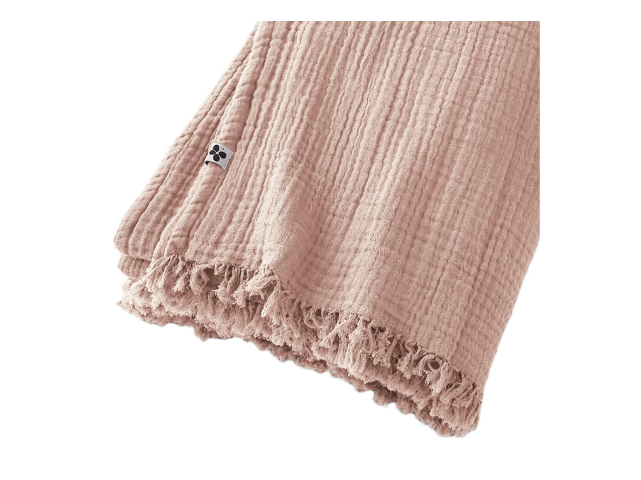 Plaid gaze de coton à franges rose 130x160 cm