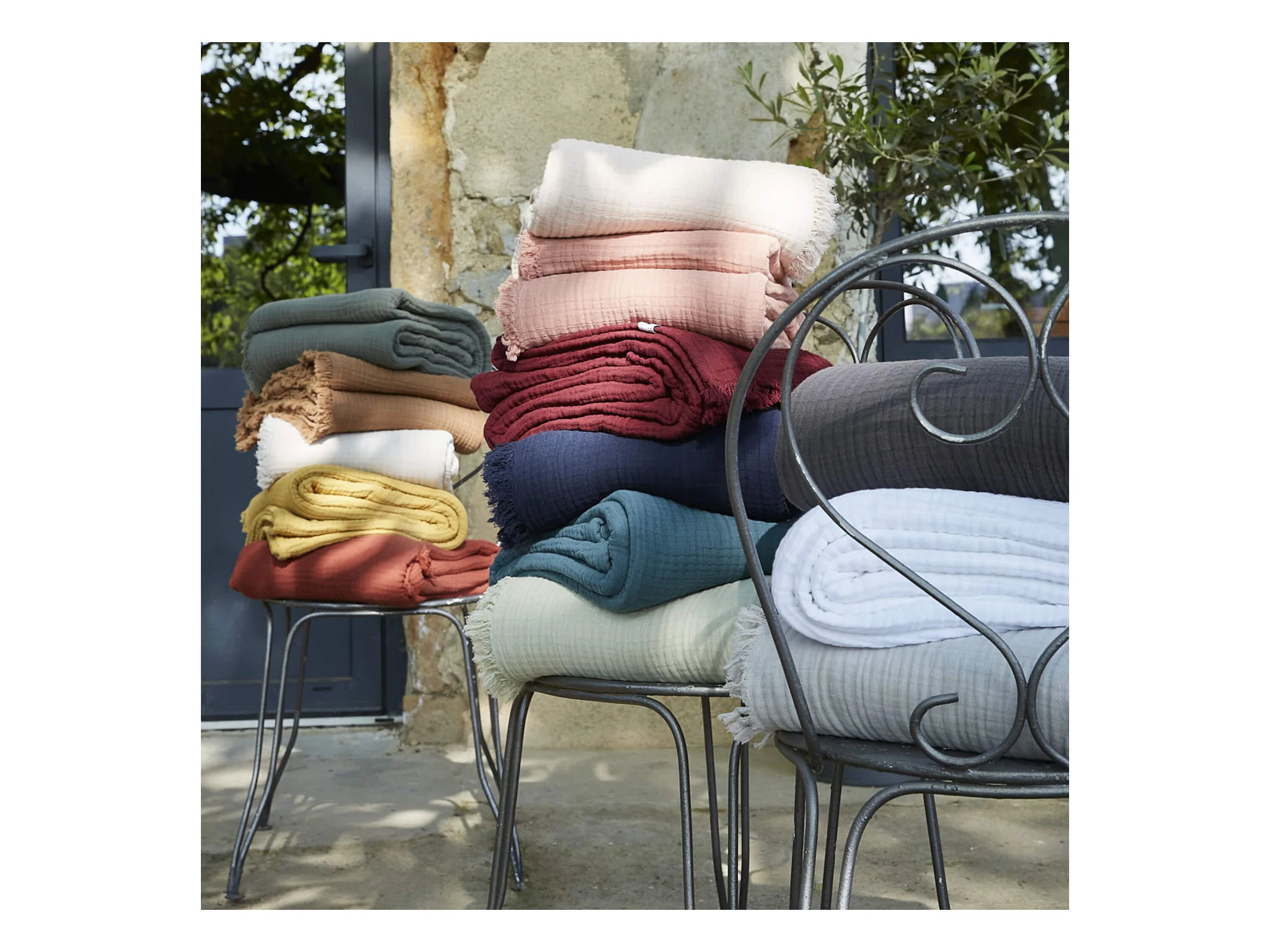 Plaid à franges "Gaïa" toutes dimensions "Gaze de Coton"