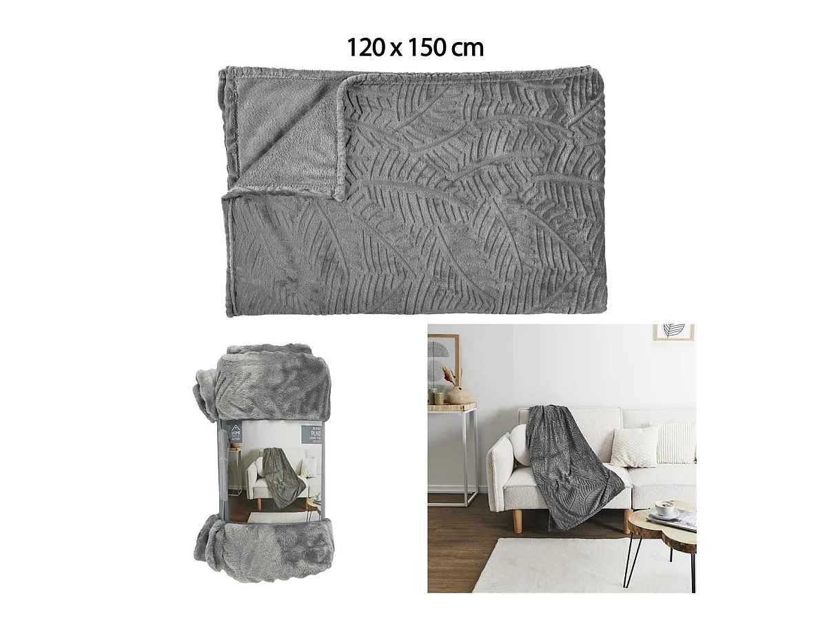 Plaid Gris Foncé Flanelle Embossé 120x150cm - ISLOV